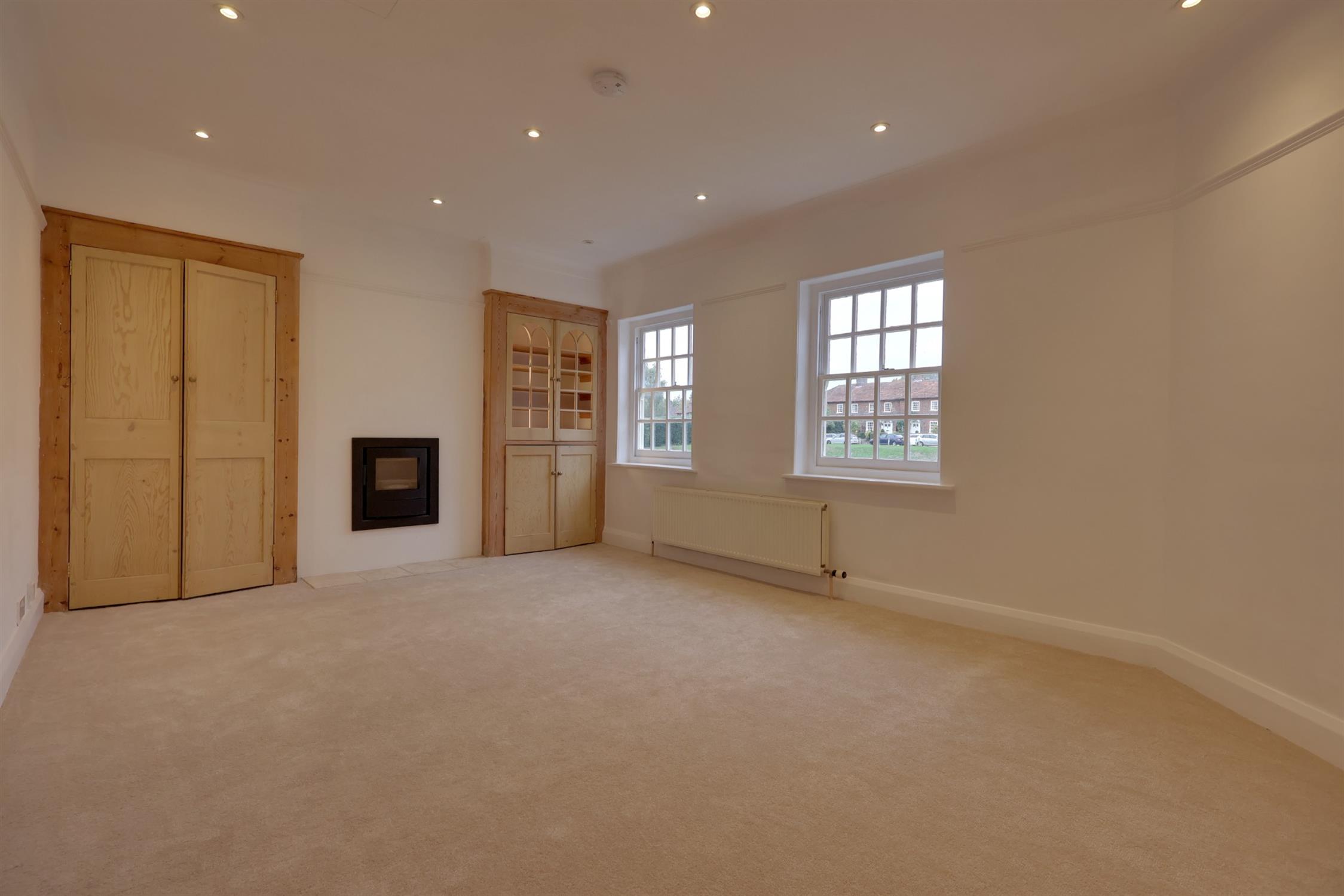 Wood burning stove. Two original decorative store cupboards. Radiator. Two sash windows.
