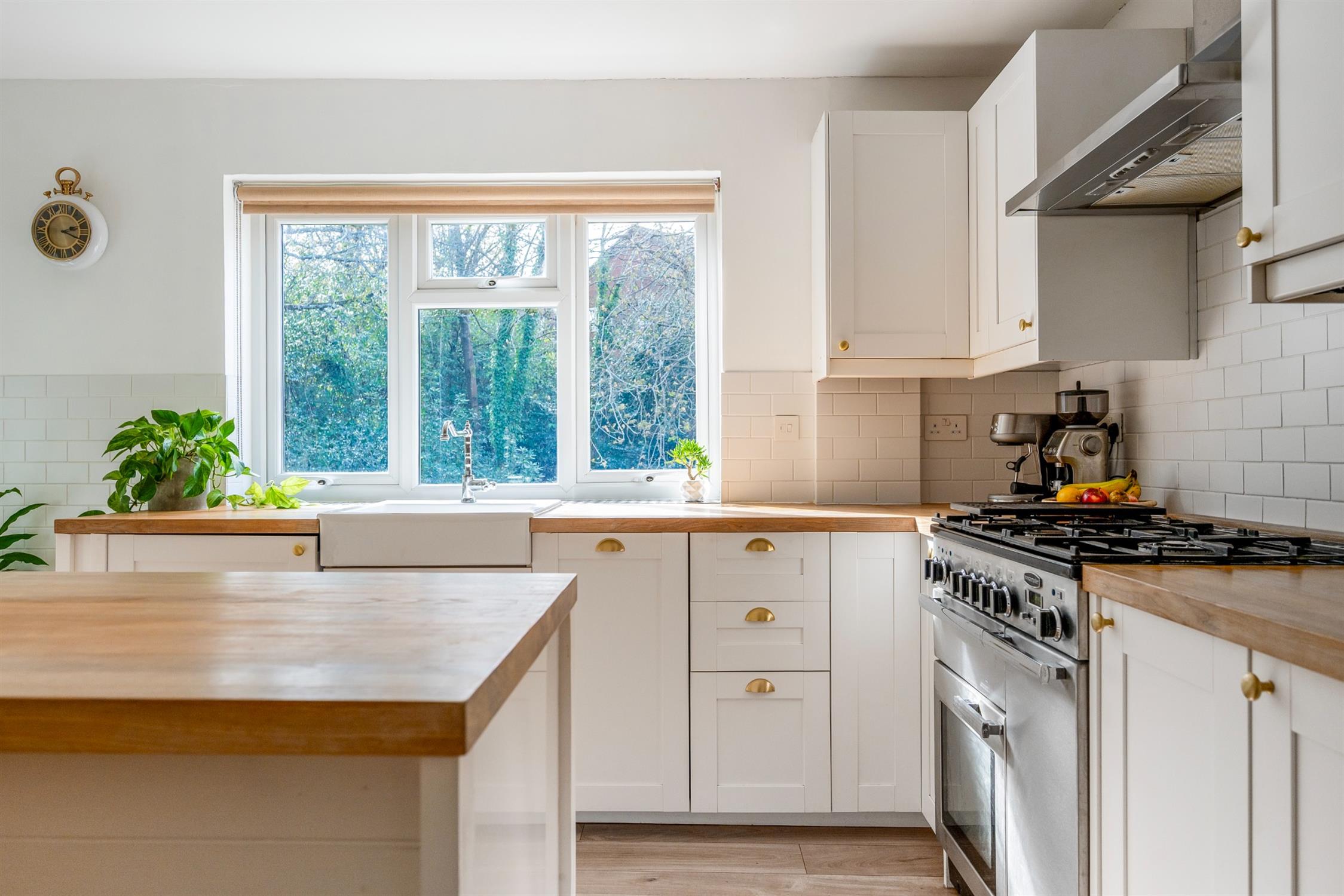 Having been the subject of both extension and improvements, the kitchen now offers a spacious dining area focusing on a central island feature. Further comprehensive range of built-in units to include butler sink with mixer tap fitting and tiled splashback. Double glazed window to rear elevation. Double glazed window to side elevation. Space for Range style cooker. Built-in microwave. Radiator. Smooth plastered ceiling. Fitted stainless steel extractor hood. Door to under stairs storage cupboard. Door to rear porch.