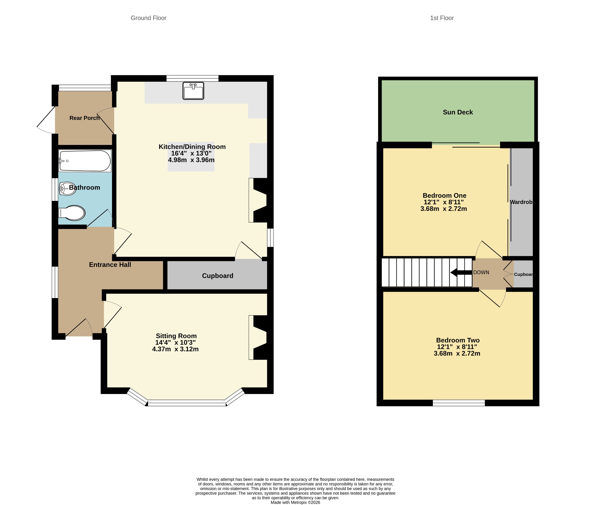The rear garden has the advantage of a patio area suitable for outside dining. The remainder being laid to lawn with security railing and views over the local stream.