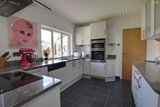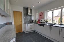 Double glazed window to rear elevation. Kitchen comprising range of wall and base level units with granite work surfaces over with integrated sink and drainer. Built in four ring electric induction hob with granite splashback. Cooker hood over. Built in double ‘Neff’ oven with cupboards under and over. Built in and concealed dishwasher. Integrated fridge and a freezer. Tiled flooring. Inset ceiling spotlights.