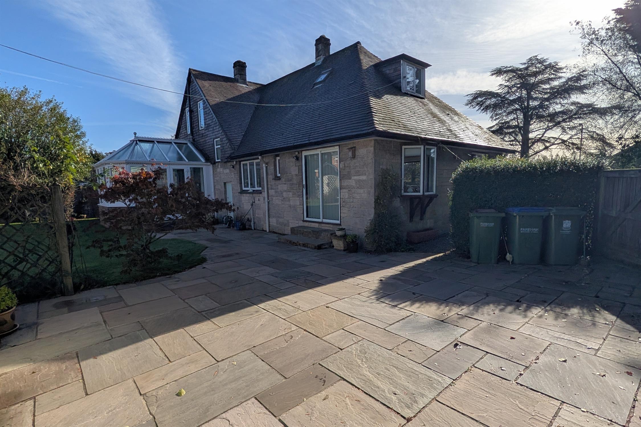 DESCRIPTION An individual detached chalet style property located to the north of Fareham on a plot measuring approximately a quarter of an acre. This well-presented four bedroom home briefly comprises entrance porch, ‘L’ shaped reception hall with stairs rising to first floor, ‘L’ shaped lounge, dining room, re-fitted kitchen and 22’ double glazed conservatory. There are two ground floor bedrooms, the master bedroom has its own dressing room and en-suite shower room, plus two further first floor bedrooms and bathroom. There is a large landing/study area which could provide a further sitting room.