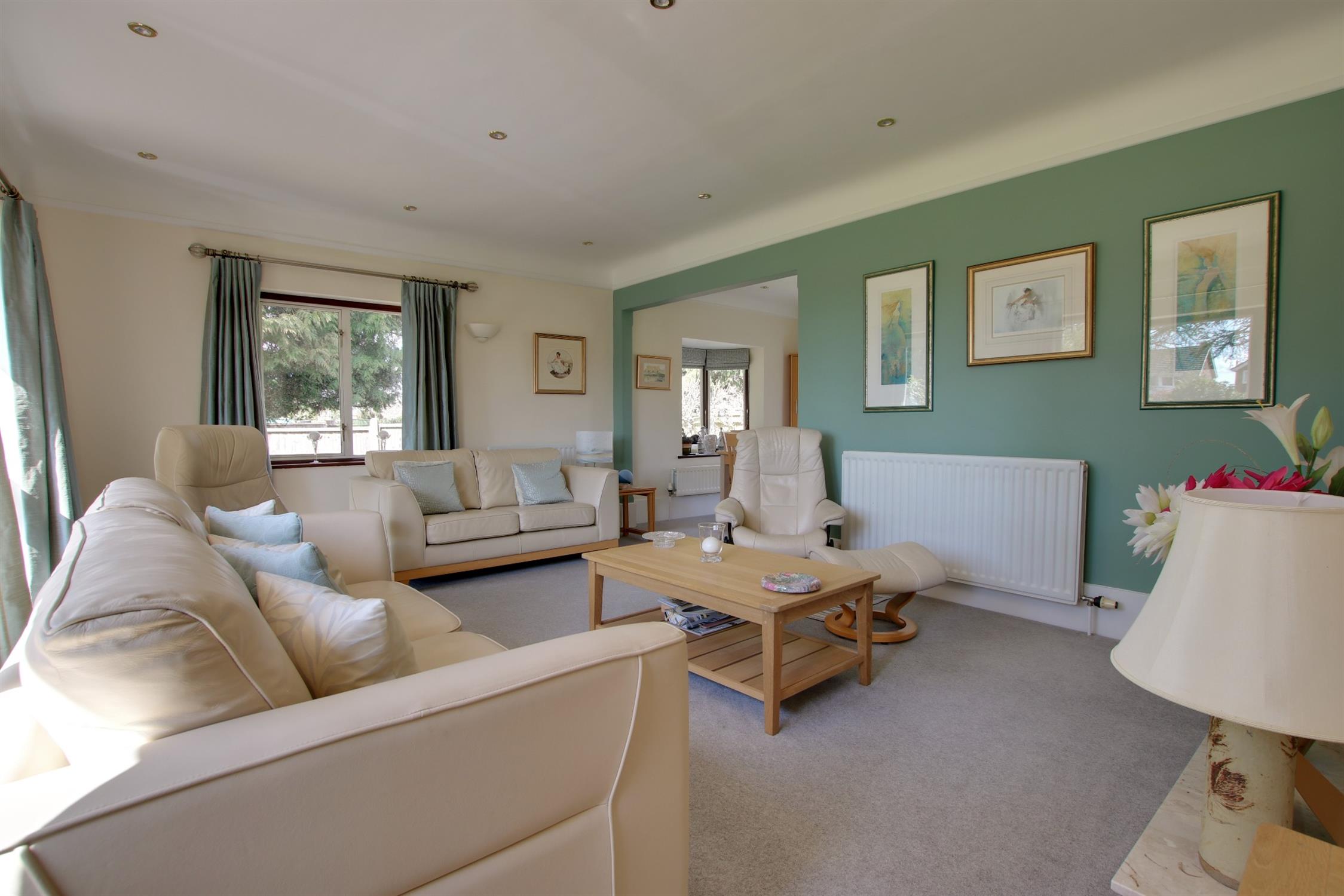 Double glazed windows to front and side elevation and double glazed door leading to front garden. Chimney breast with coal effect gas fire set on a marble hearth. Cupboard built into chimney breast recess with an arched shelved alcove. Two radiators. Inset ceiling spotlights. Picture rail. Open plan to: