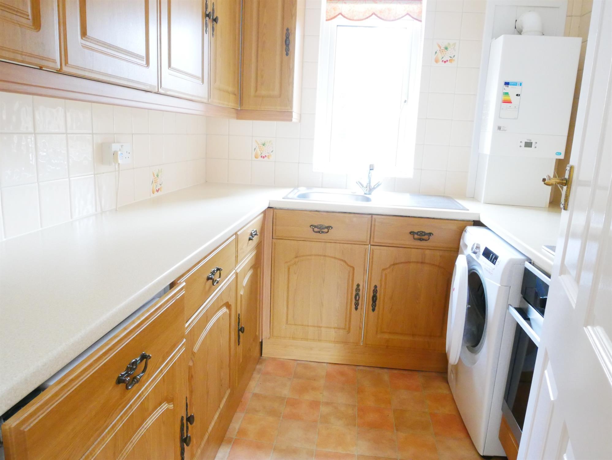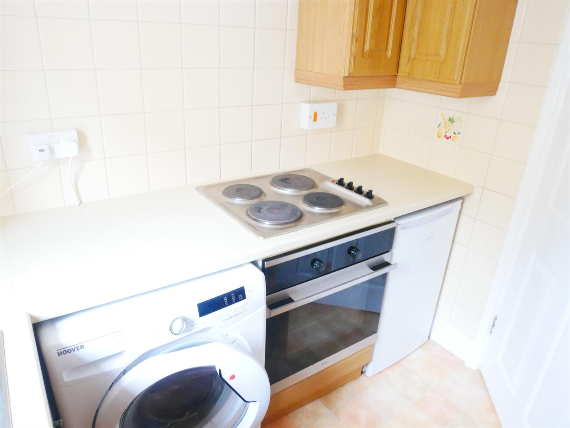 KITCHEN - A traditional style kitchen with range of wall and base units. Appliances include: integral fridge, integral freezer, washing machine, electric hob and electric oven. Window.