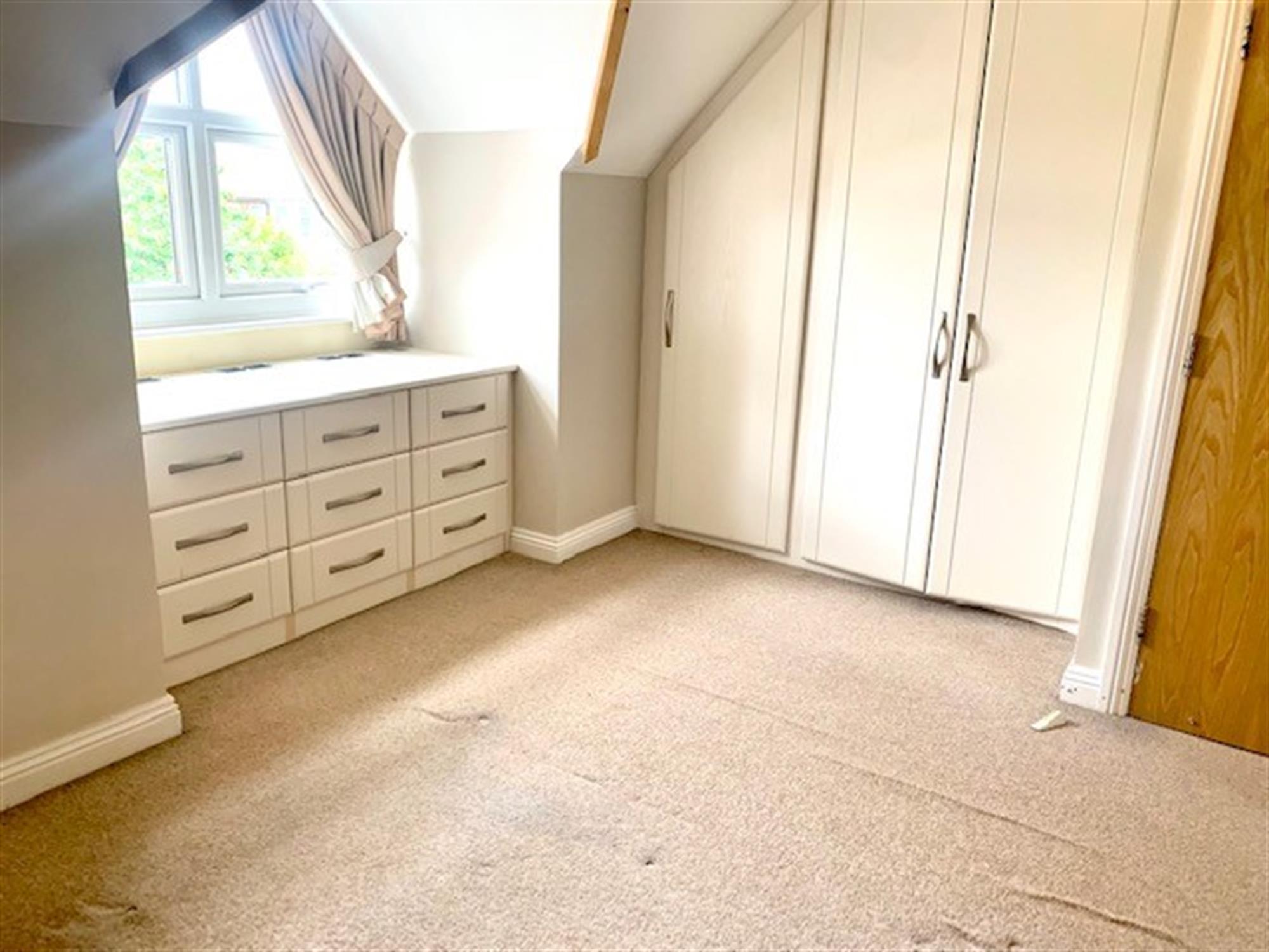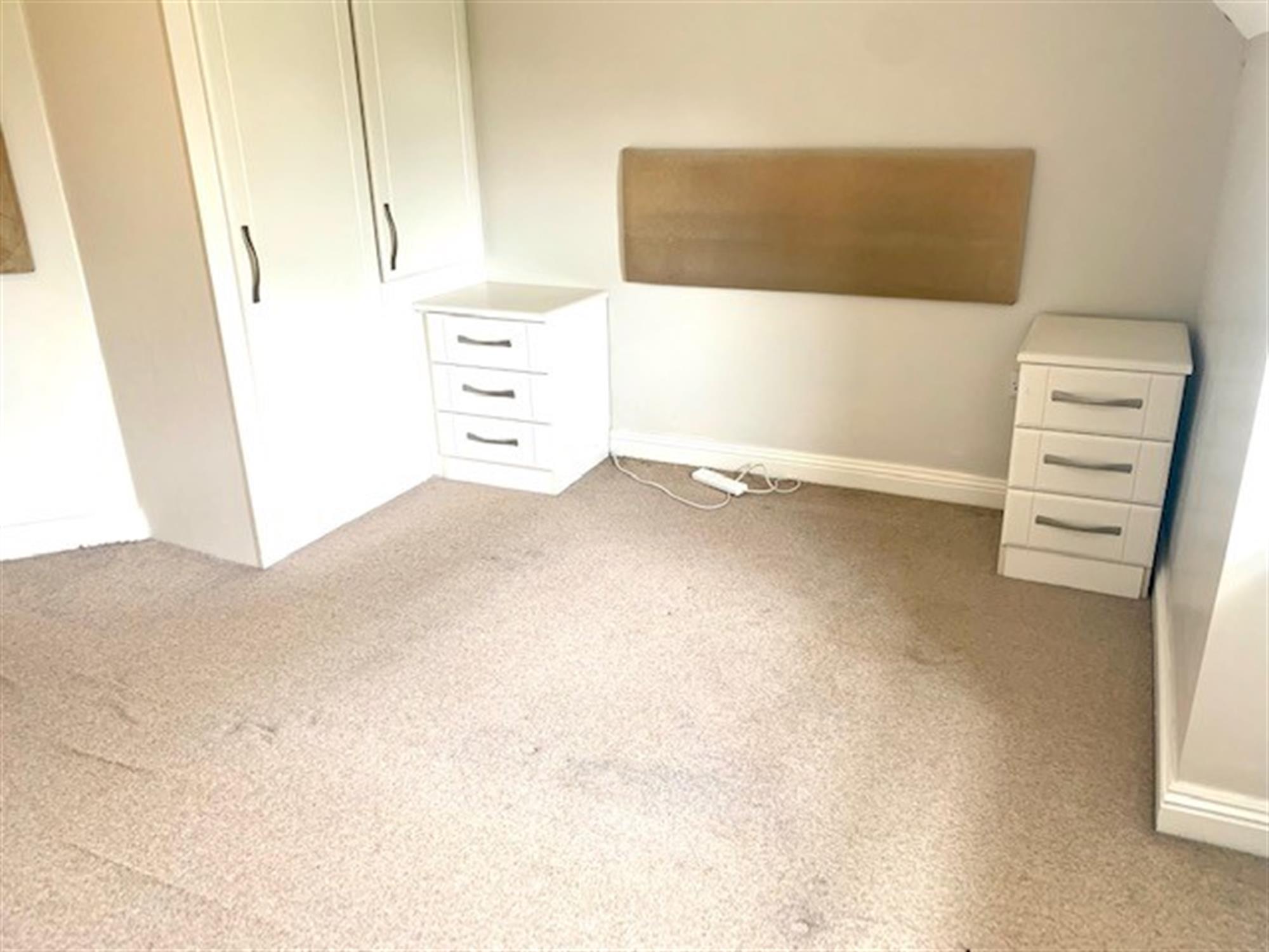 Double bedroom with a range of built-in wardrobe and drawers. A built-in cupboard. Window to rear. Carpeted. Door to en-suite.