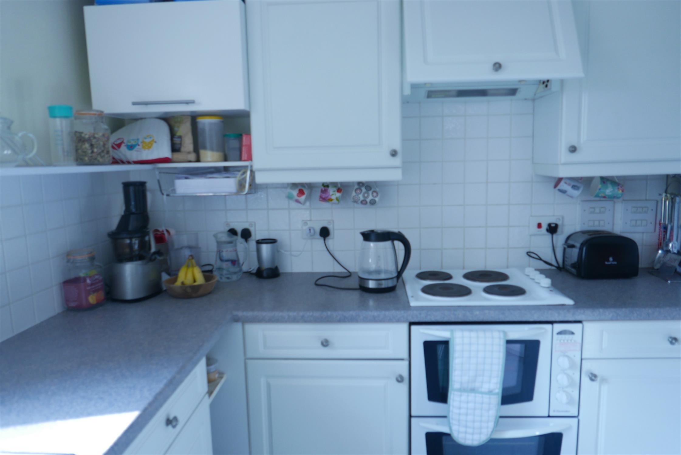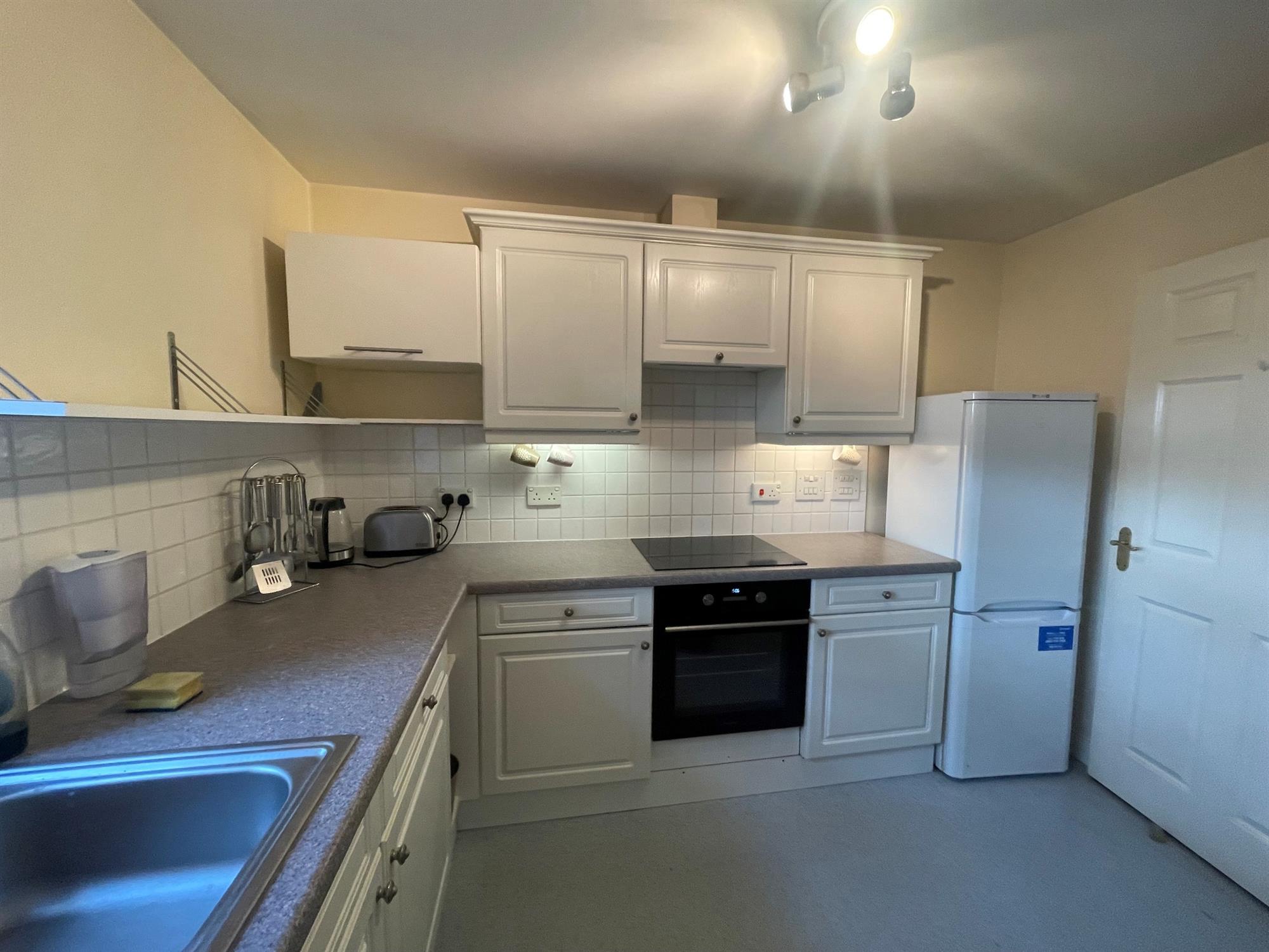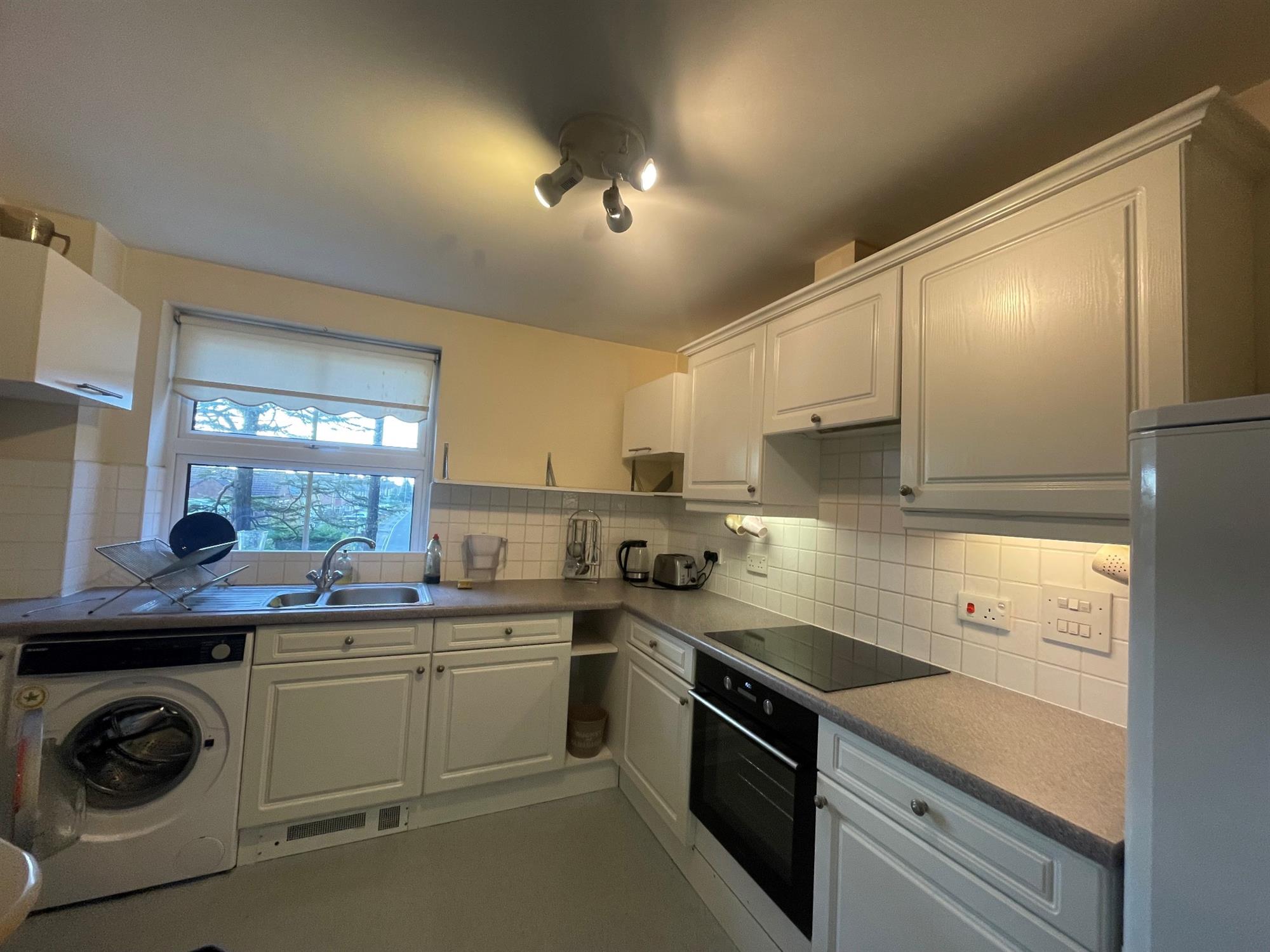 KITCHEN:- Fitted wall and base units with winodw to front. White goods consist of: Electric hob, electric oven, washing machine and fridge/freezer.