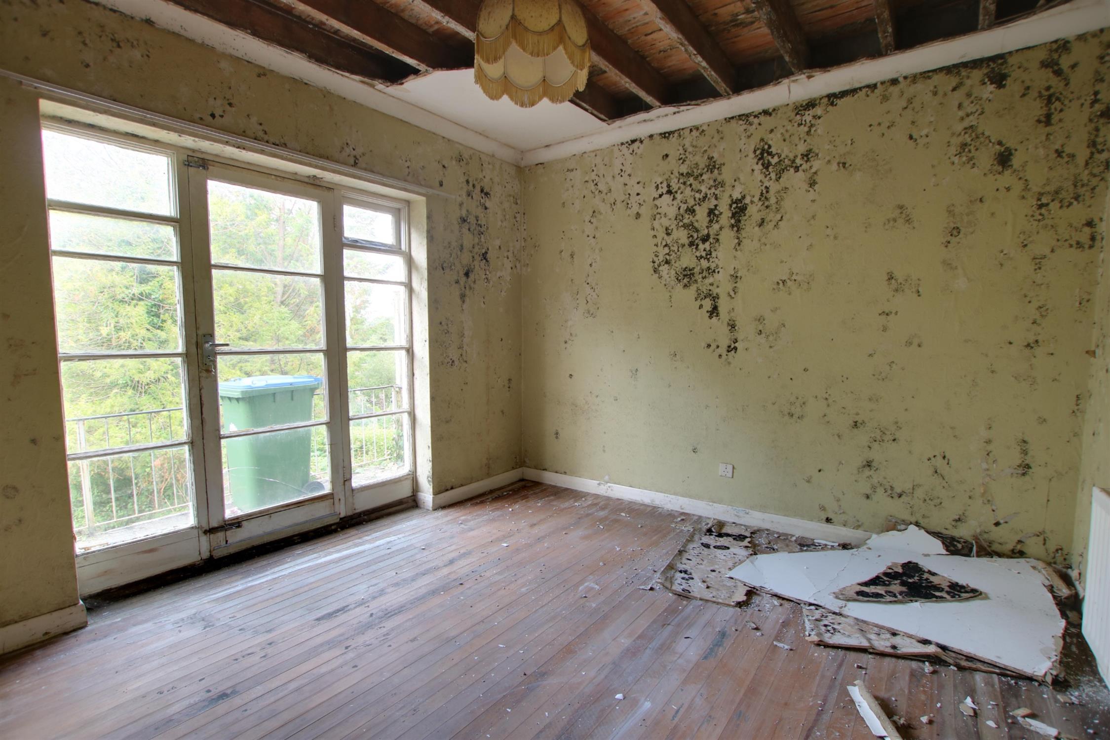 Glazed door and side windows opening onto rear terrace. Radiator.