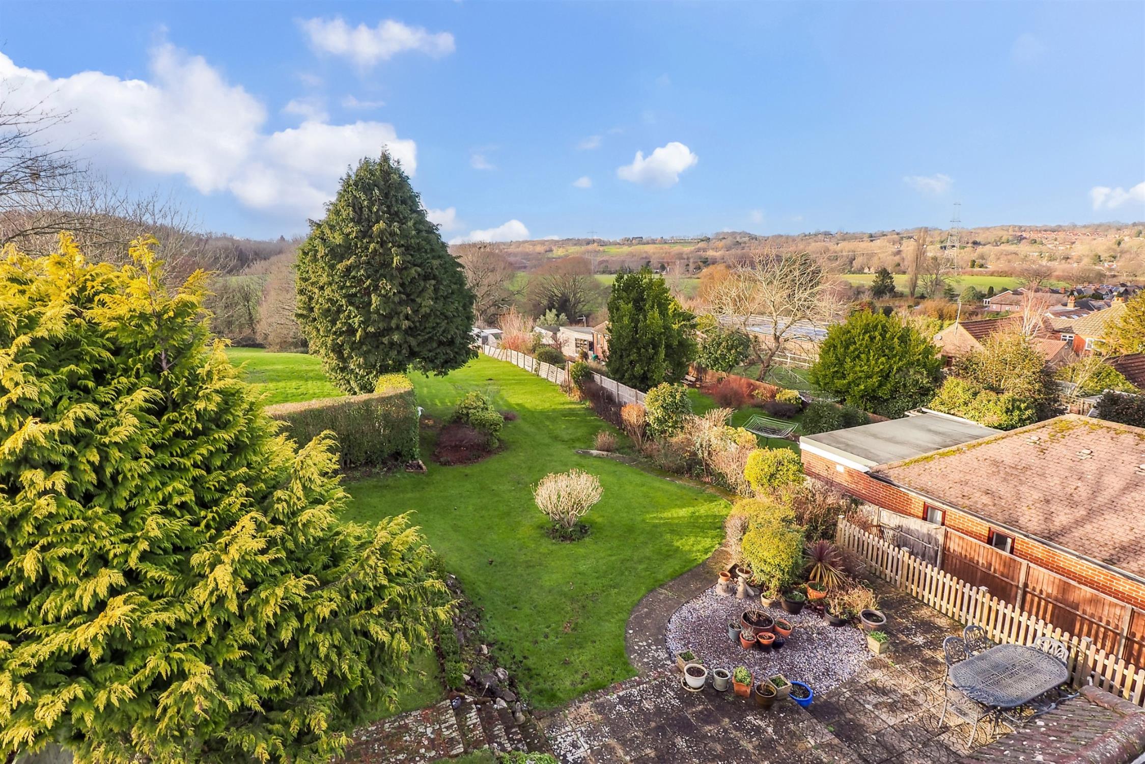The rear garden itself has a large patio area adjacent to the property. The initial section of garden is mainly laid to lawn with well-stocked flower and shrub borders and a path leading through the garden. The majority of the remainder of the garden can be found mainly laid to lawn and drops down to a wooded area and stream. The garden is fence enclosed and has gated pedestrian access to both sides.