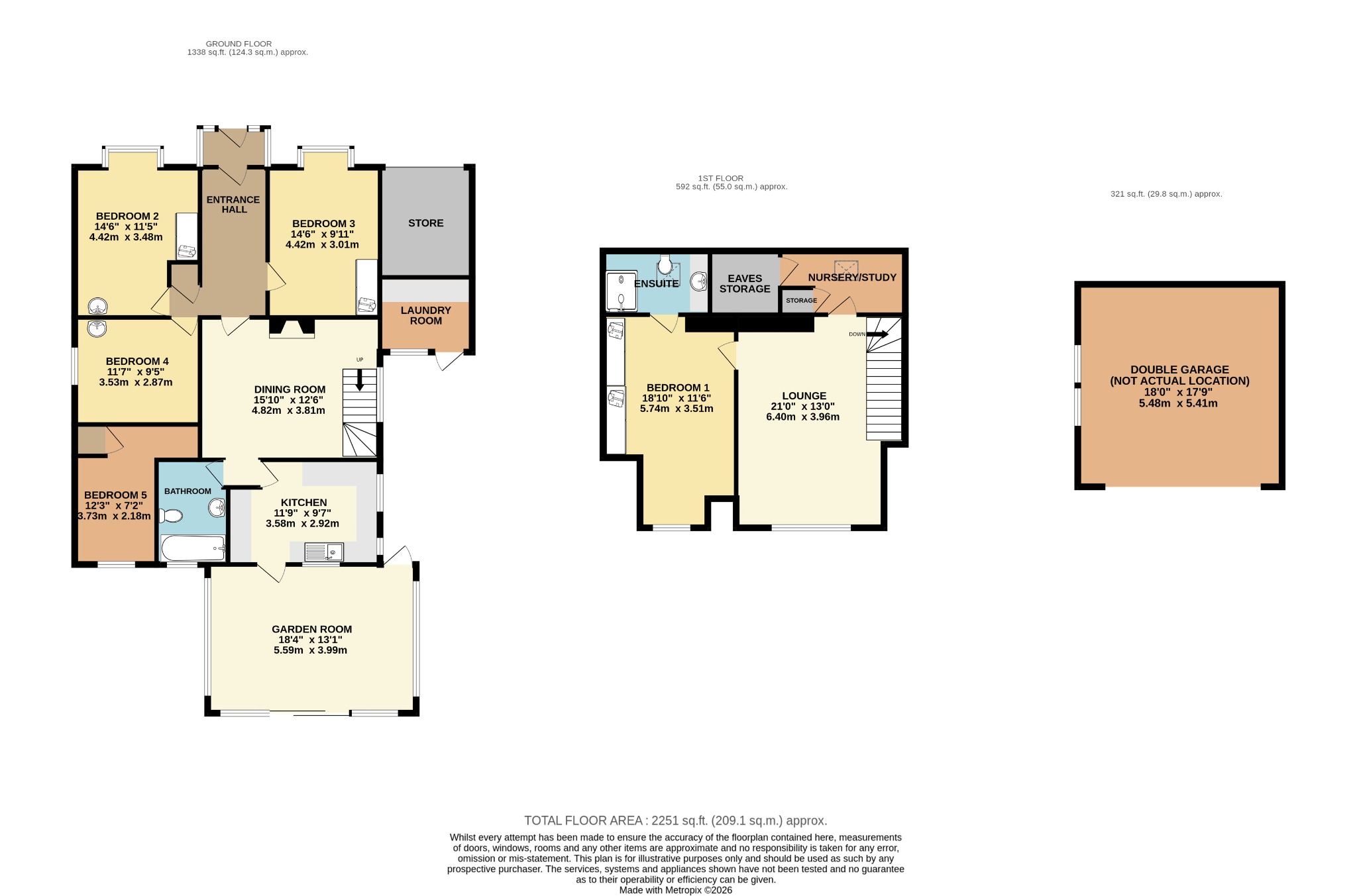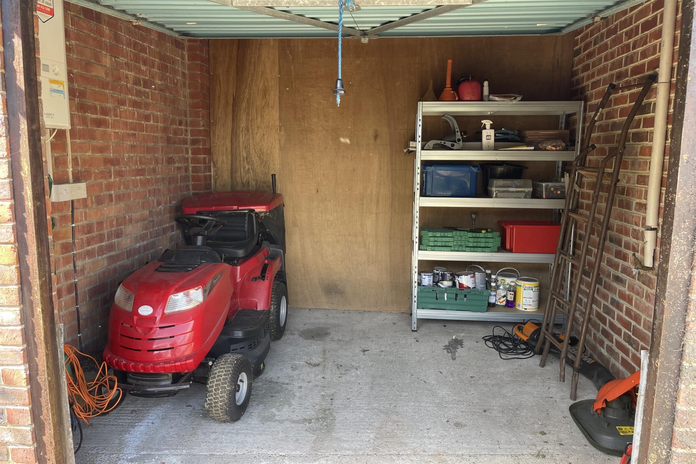 There is a double garage located towards the front of the property. The adjoining garage has been subdivided to provide a store room to the front accessible via up and over door with power and light and where the gas boiler can be found, whilst the second half of the garage has plumbing for washing machine with further appliance space and work surface over and has a double glazed door and window to the side patio.