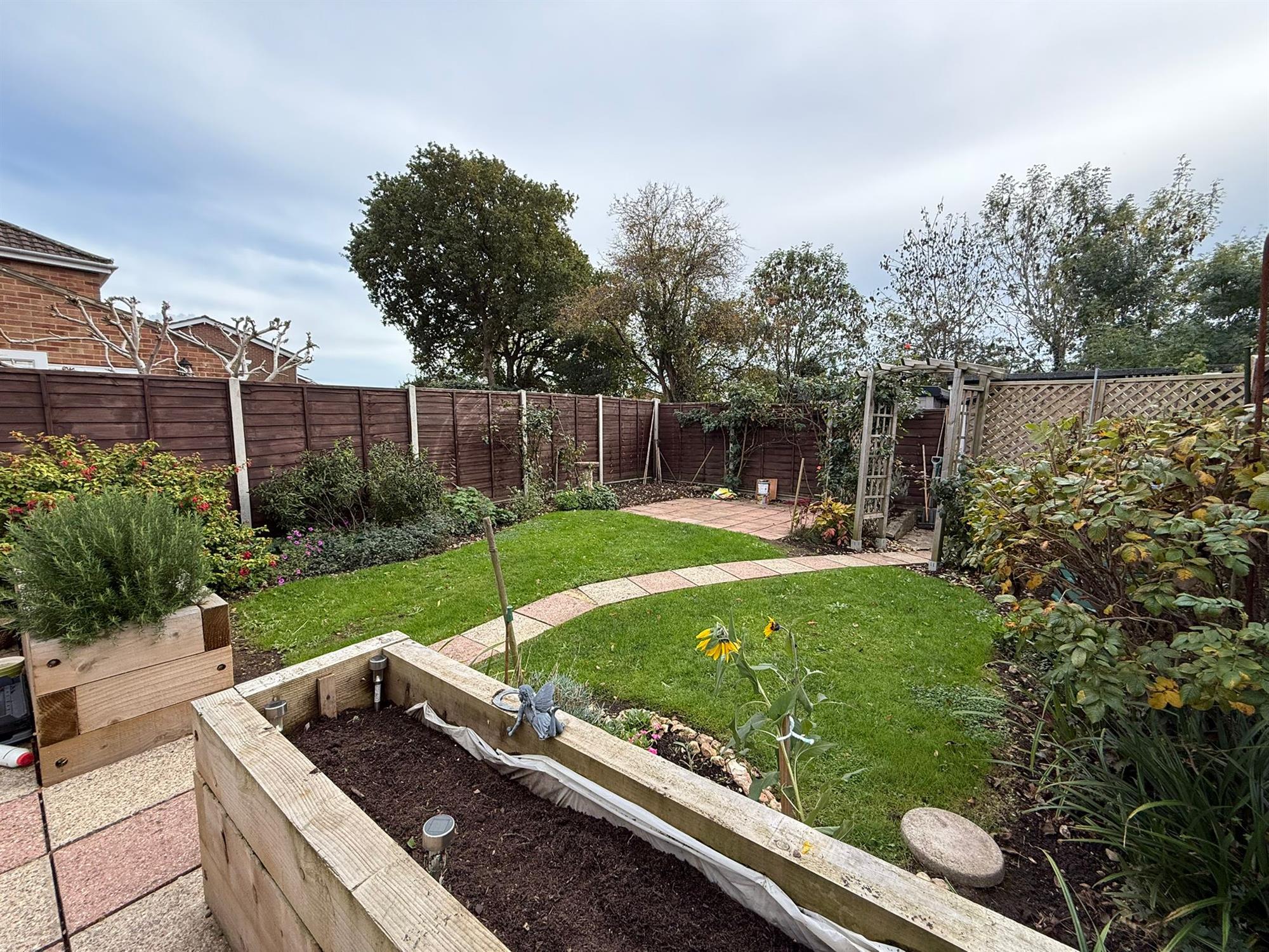 OUTSIDE – Rear south-facing garden with grass areas and well-matured flower beds. Private rear gated access. One allocated parking space located under a car port to the rear of the property, in a private residential road.