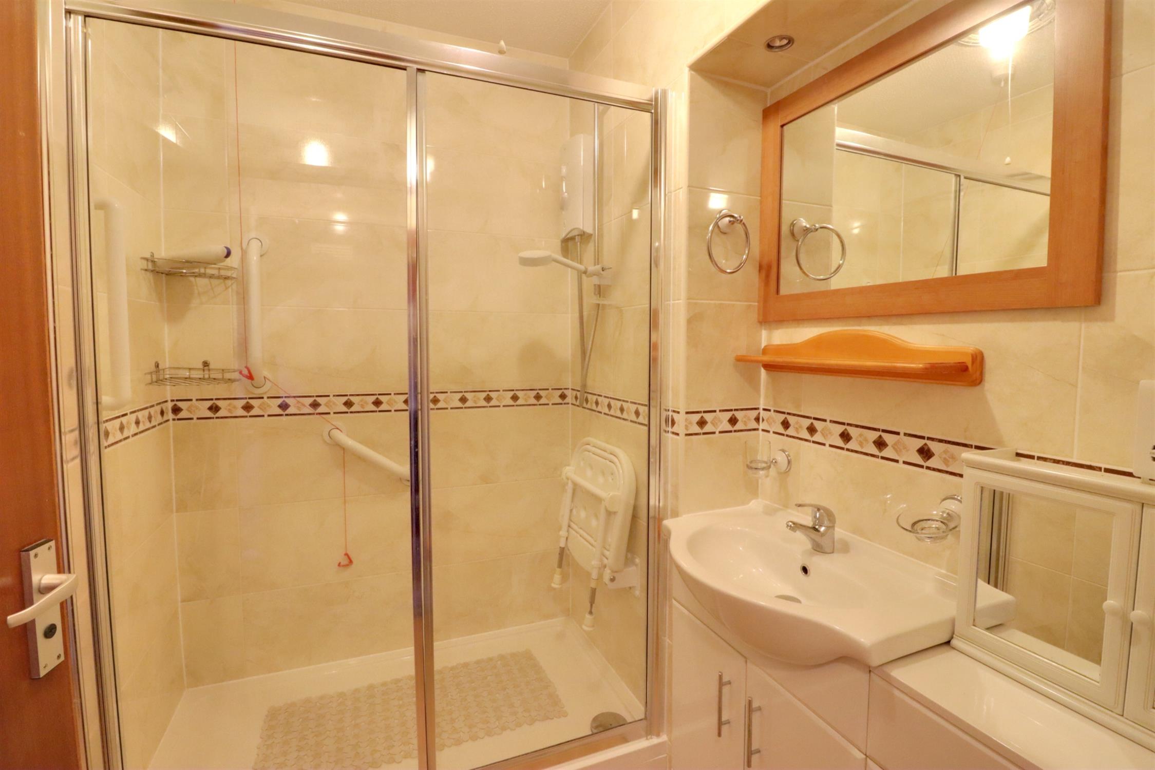 Doors to the bedroom, shower room, and lounge, built in airing cupboard, wall-mounted emergency call unit.