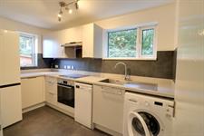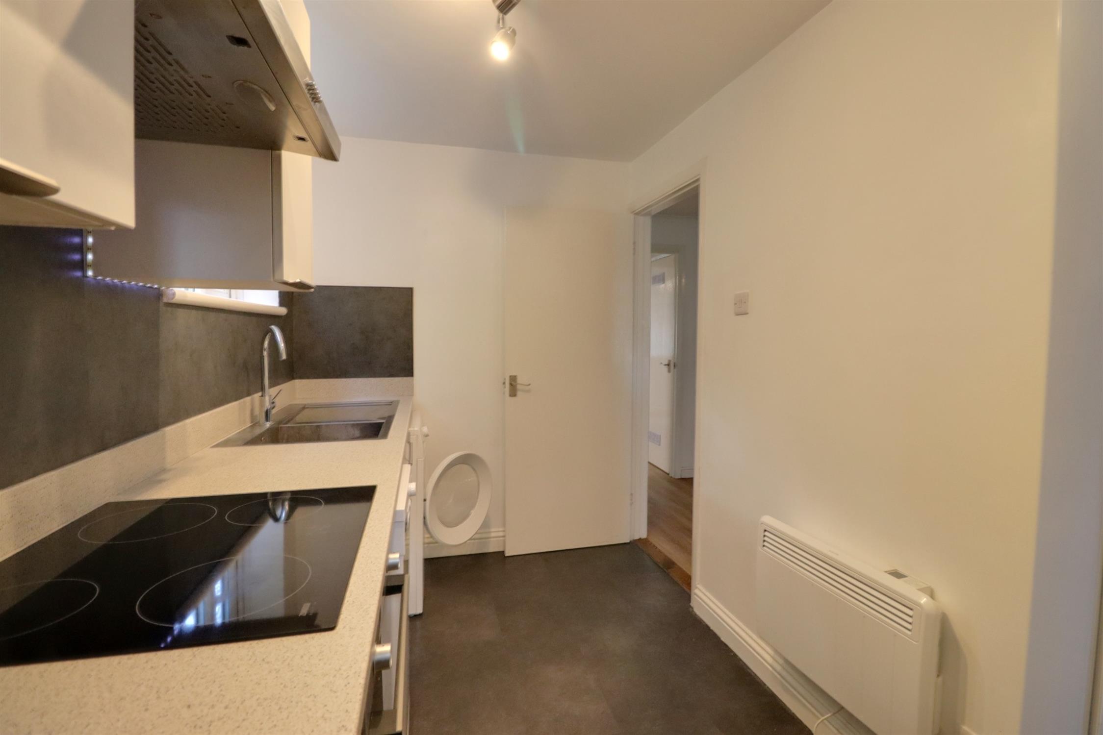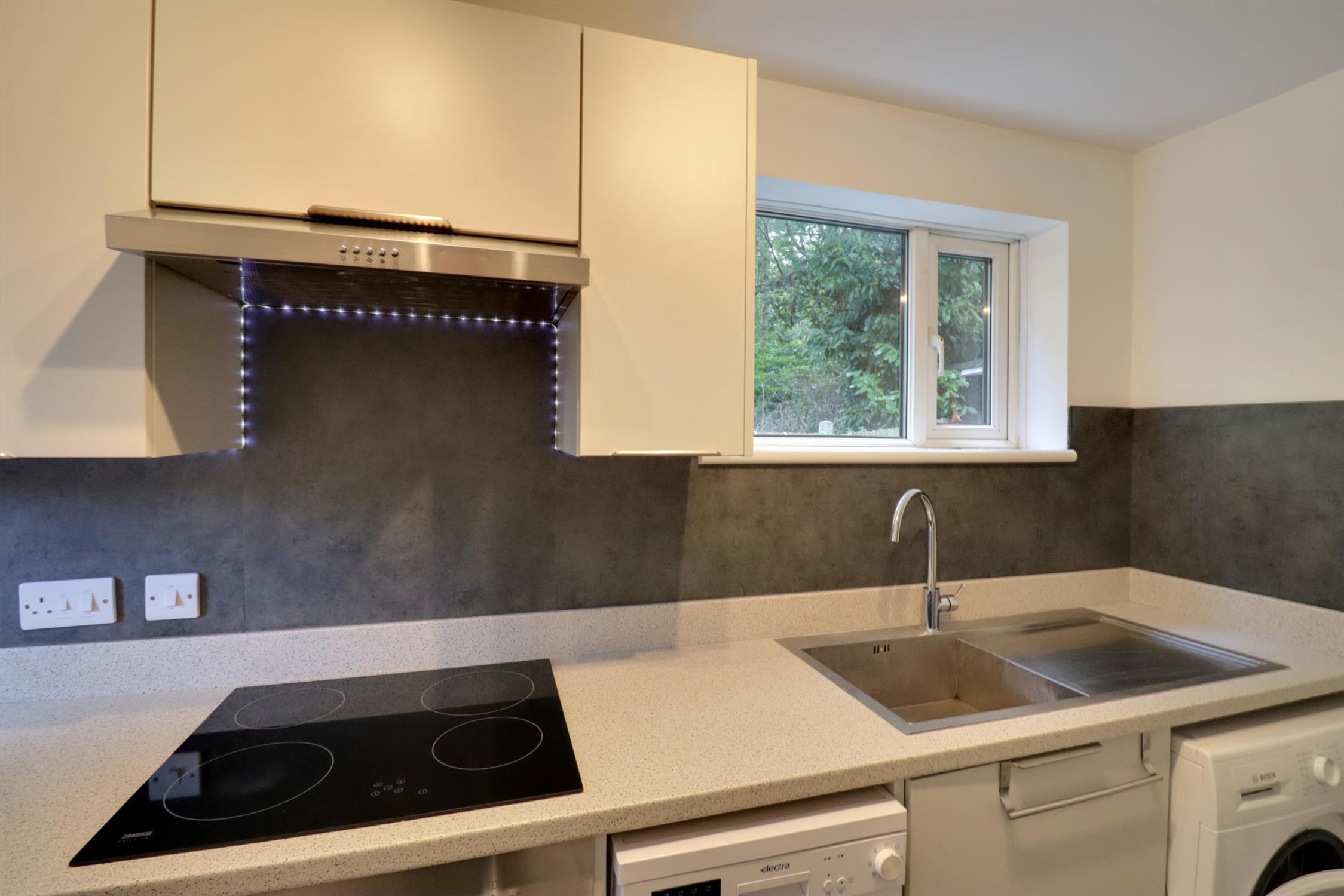 Re-fitted with a modern range of matching wall and base units with worksurfaces over, integral electric oven and hob with extractor hood over, spaces for washing machine, fridge/freezer and slimline dishwasher, wall-mounted electric heater, front and side aspect double glazed windows, inset stainless steel sink and drainer.