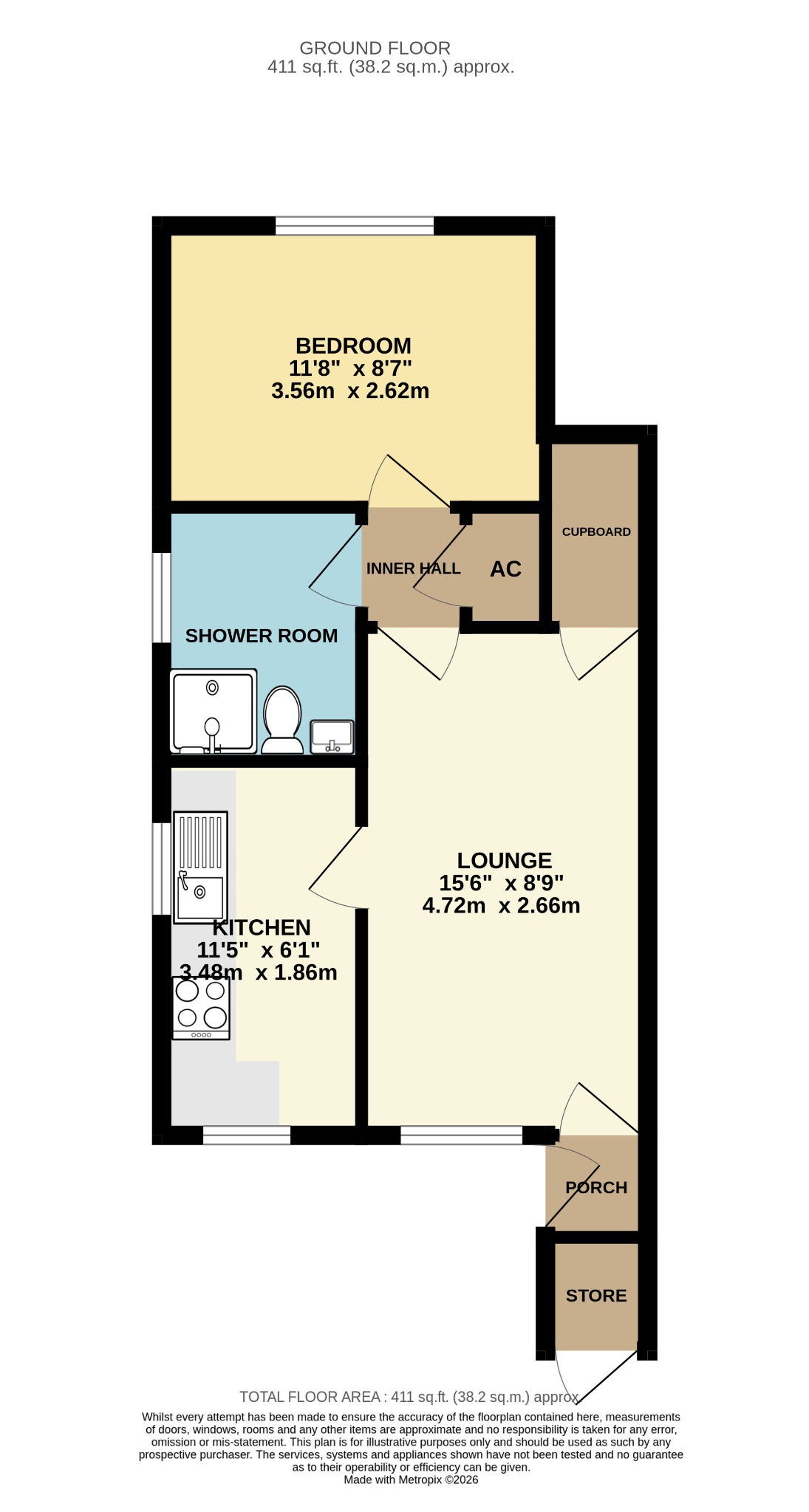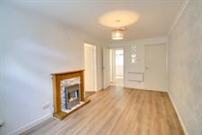 Front aspect double glazed window, wall-mounted electric heater, fireplace with electric fire, laminate flooring, built-in storage cupboard, doors to the kitchen and inner hall.