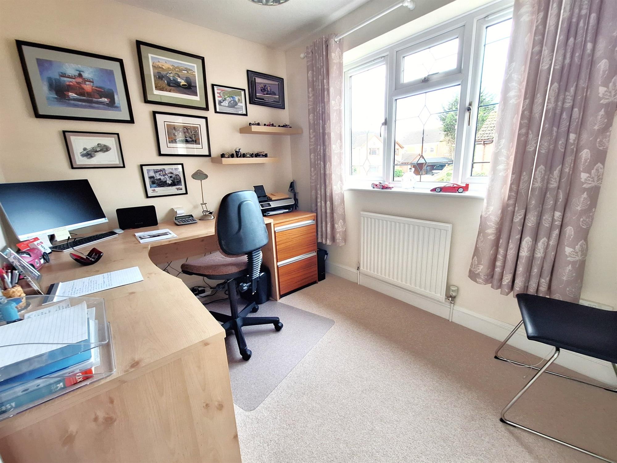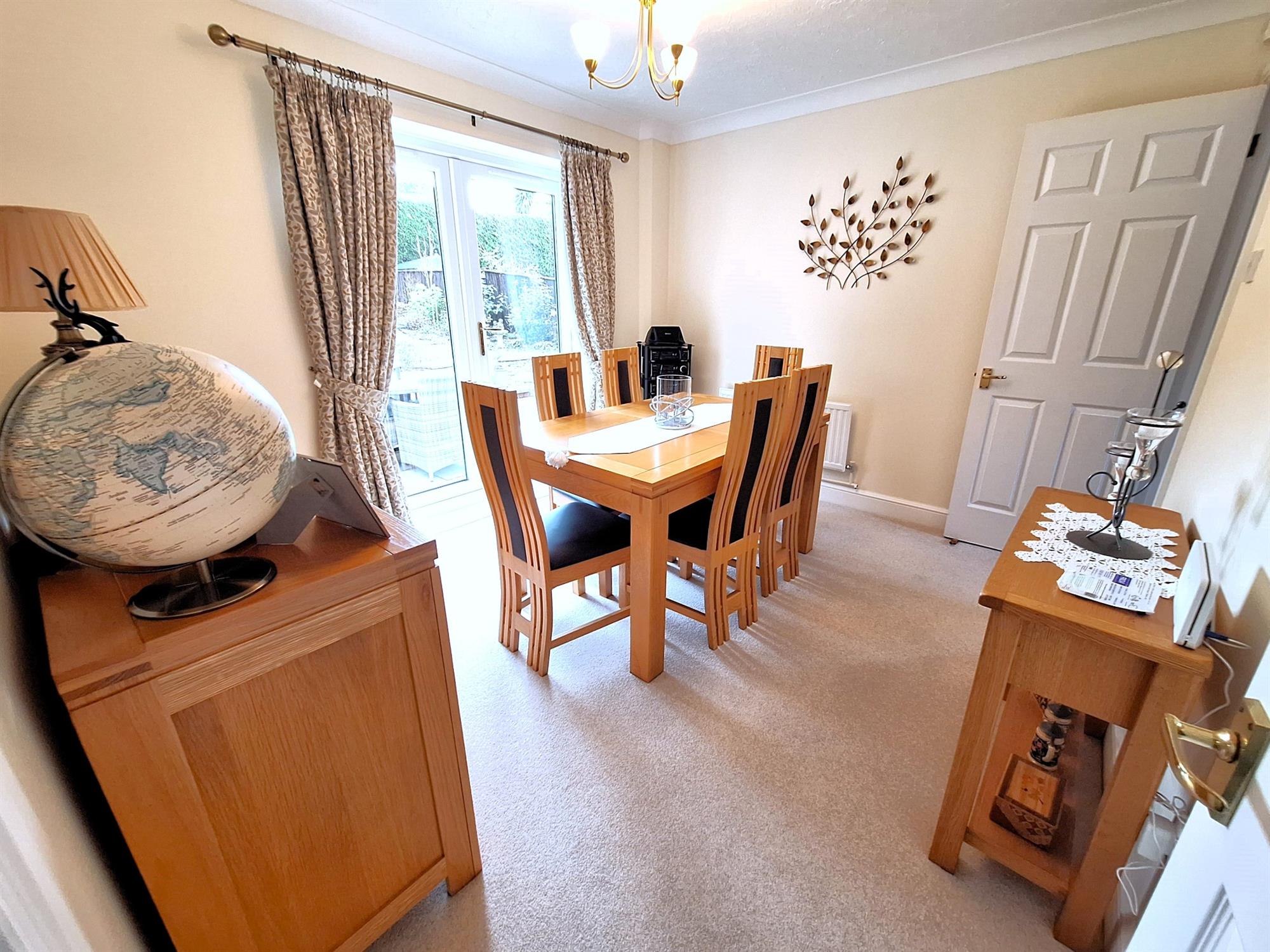 Double-glazed doors opening to and accessing the rear garden. Covered radiator. Carpeted flooring.