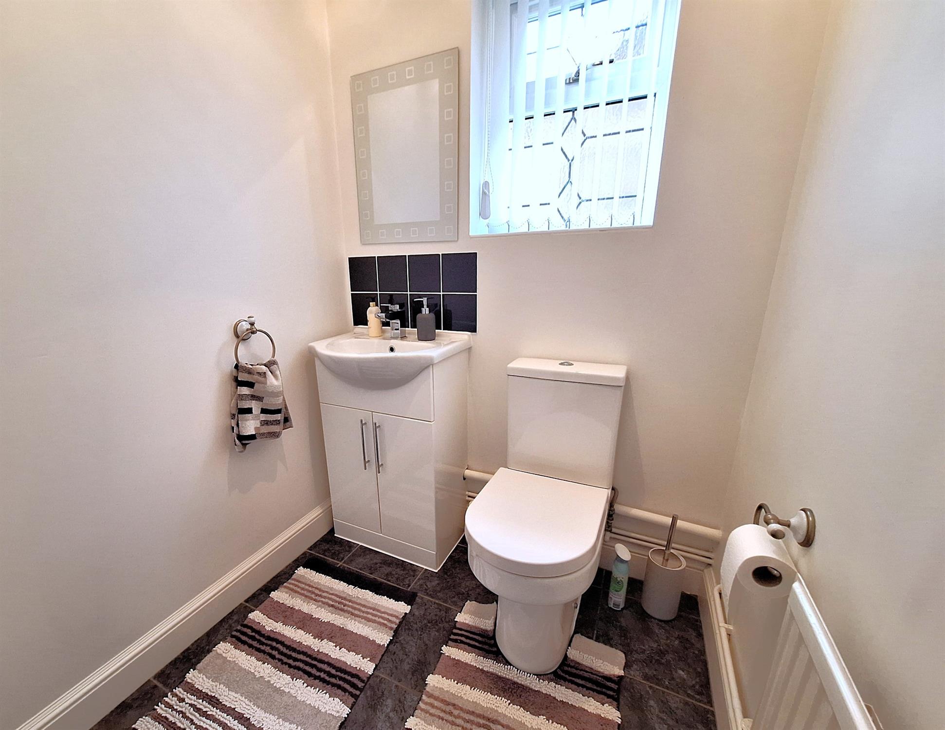 Window to front aspect. Radiator. Pedestal wash hand basin, low level WC. Tiling to principal areas.