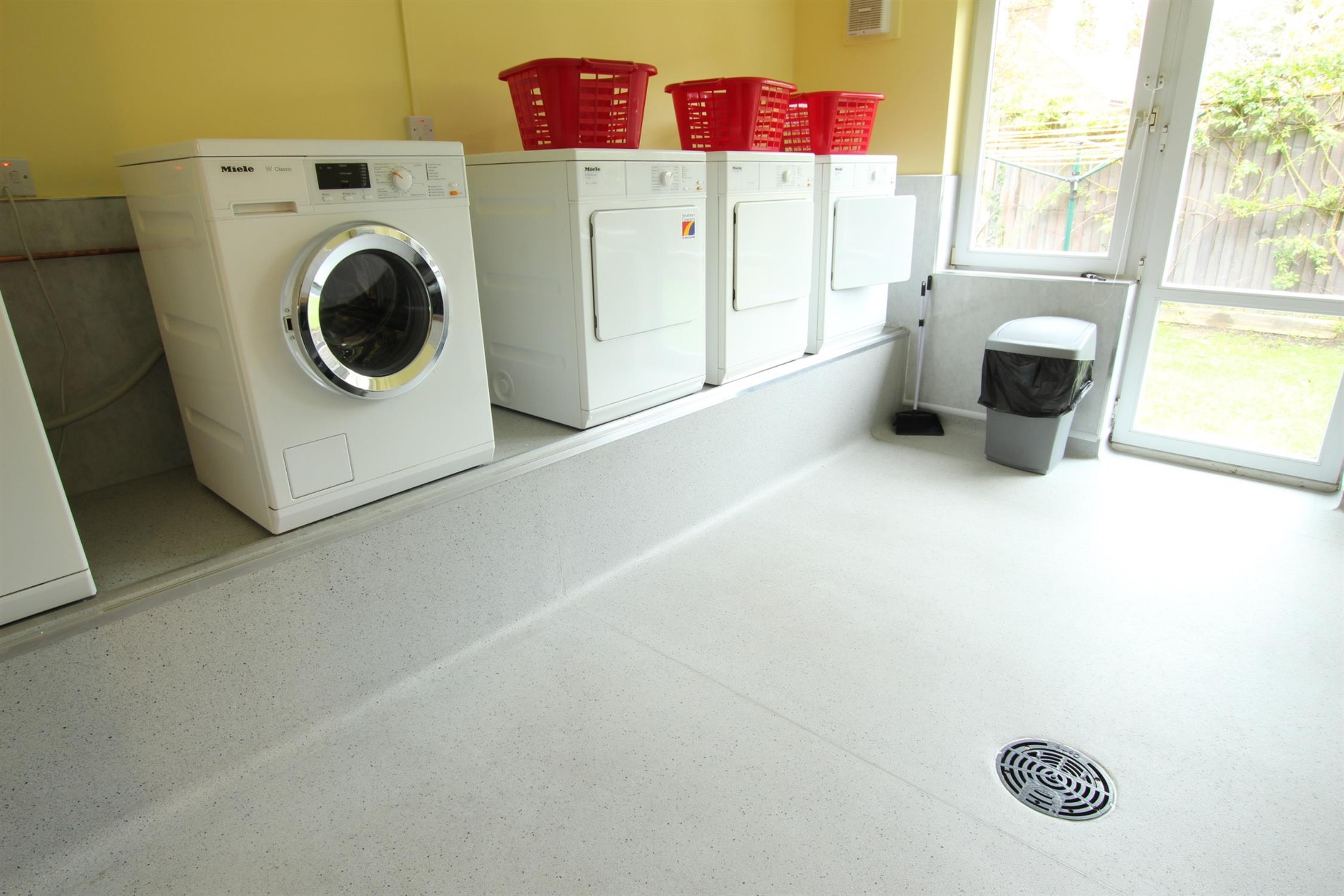 Low level WC with concealed flush. Inset wash hand basin with cupboard below. Shower unit with glazed screen and Mirca shower over. Electric heater. Extractor fan.
