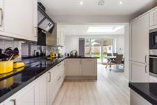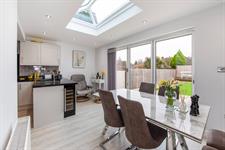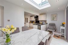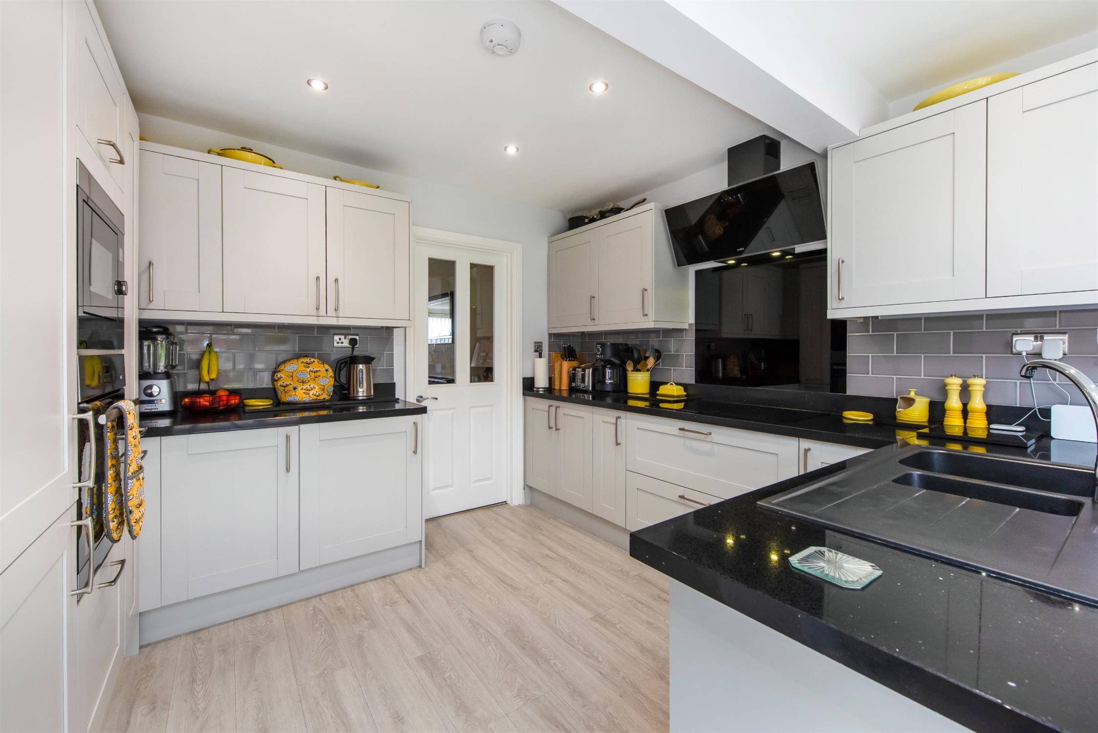Smooth plastered ceiling, spotlighting, a complimentary range of wall-mounted and base level units. one and a half sink with swan neck mixer tap in chrome finish. Integrated Fridge Freezer, Dishwasher, Washing Machine and Wine Cooler. Induction Hob with extractor hood over, microwave and oven, radiator and double glazed sliding doors to the rear garden.