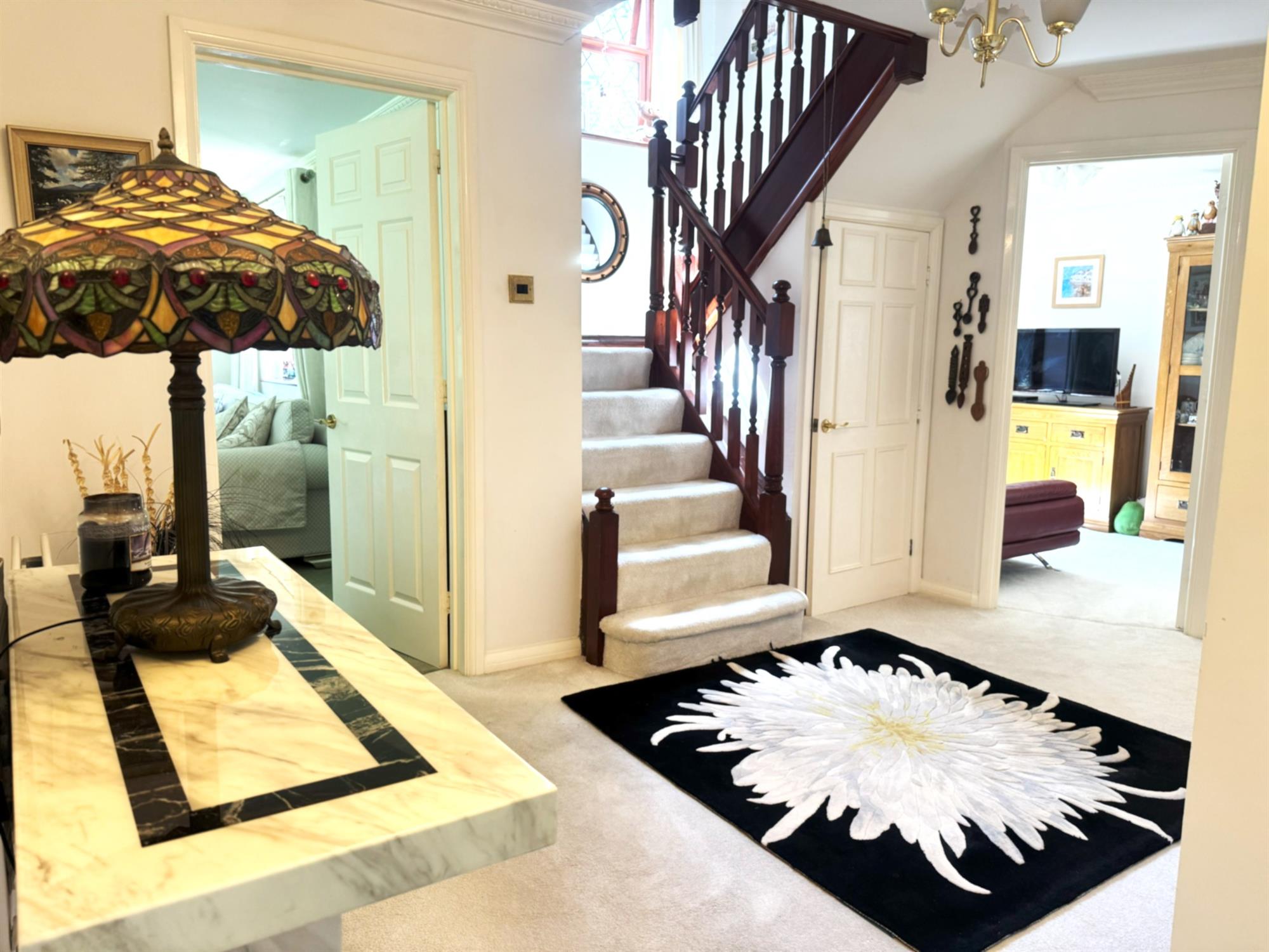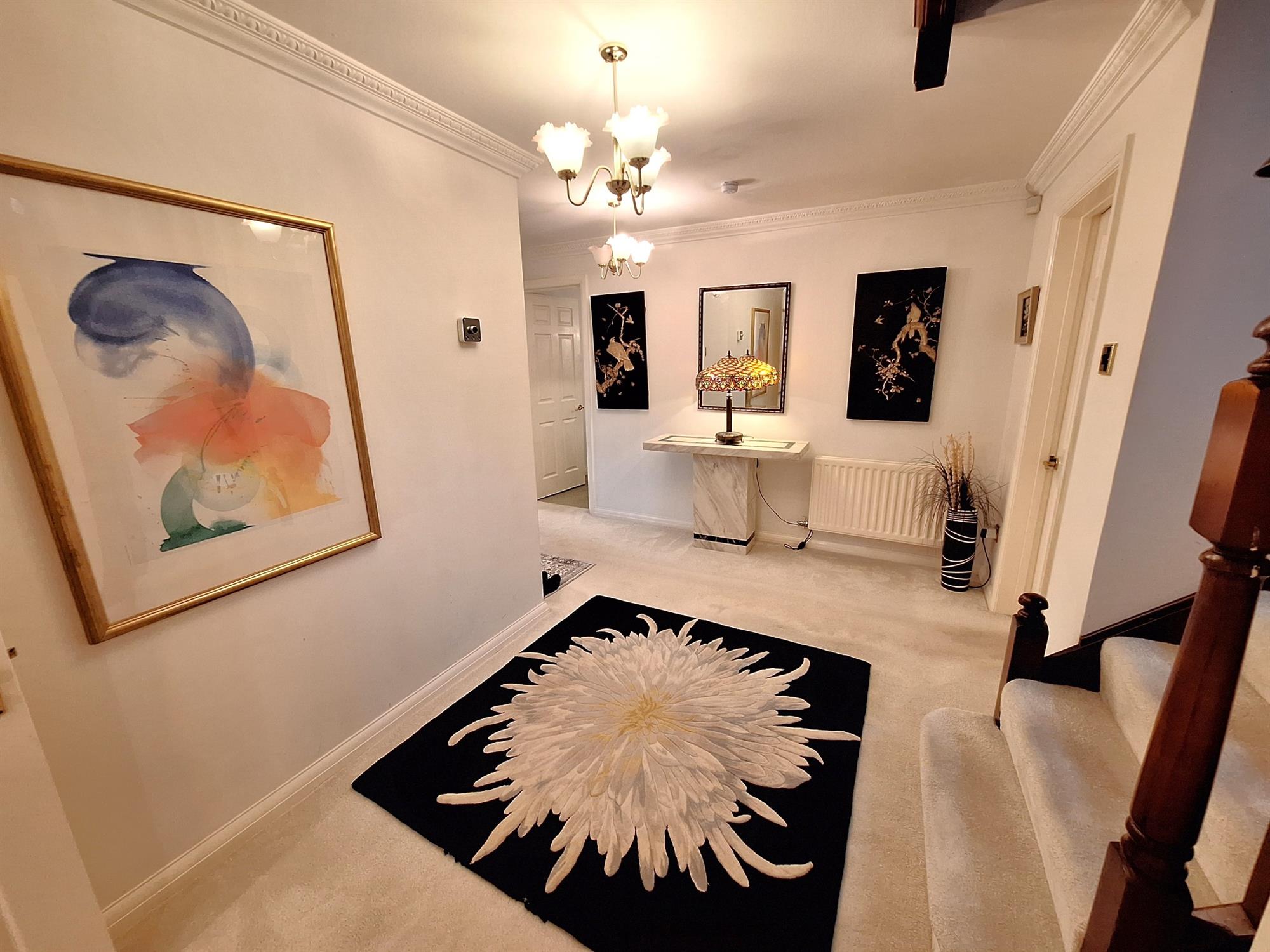 The rear garden has a superb array of shrubs and flower borders with a large well-maintained grass lawn, a large tiled paved patio to the rear accessed from the kitchen and sitting room, providing space for tables and chairs, outside lighting and tap, electric point - sockets. Side access to the front of the property, the rear garden is enclosed with a low-level brick wall and timber fencing, providing a high degree of privacy with a maturing range of trees to the backdrop. The frontage has offload parking spaces, areas of lawn, shrub hedge borders, up and over doors accessing the double garage, two gates providing access to the rear with wider access entry.