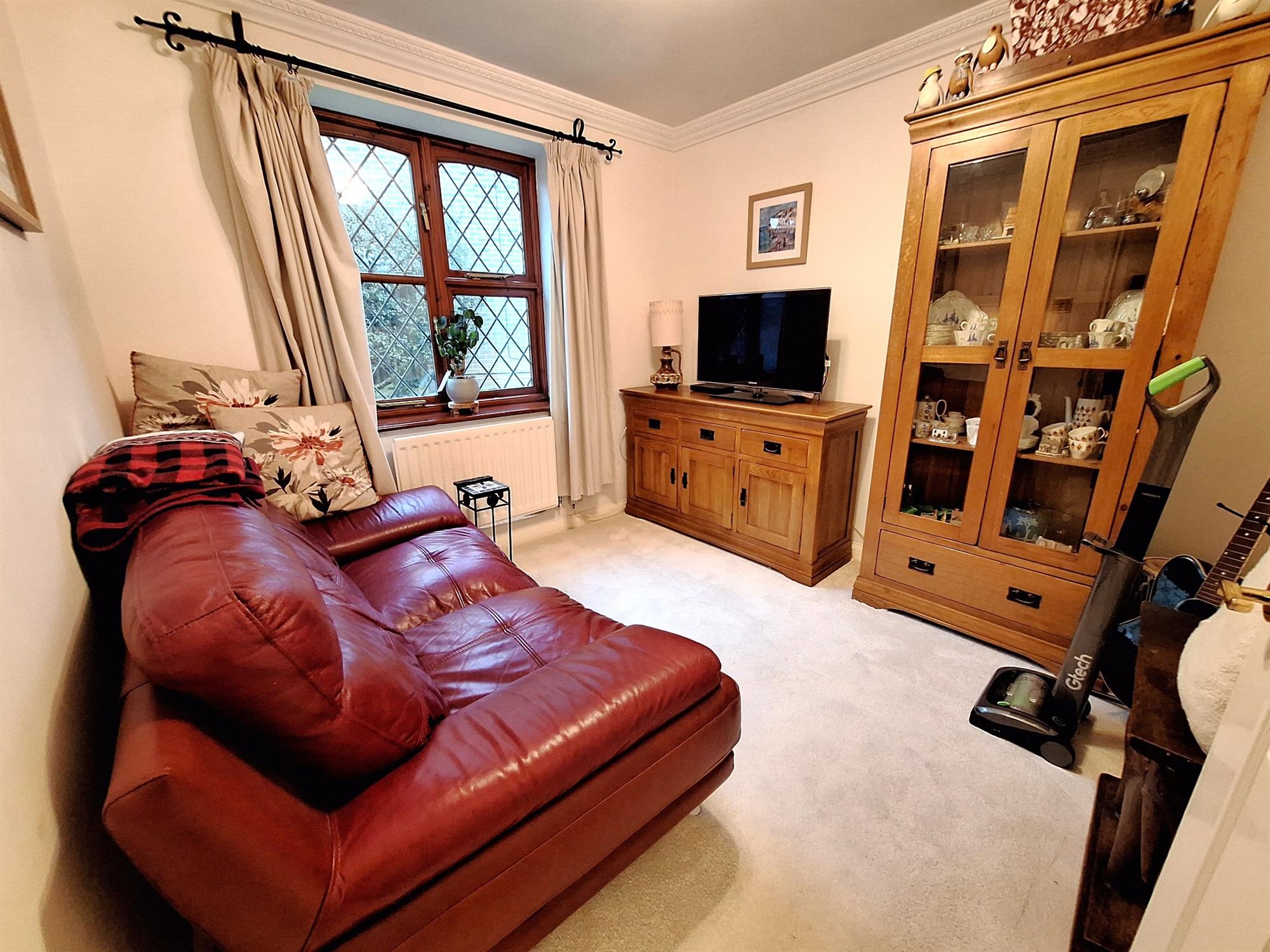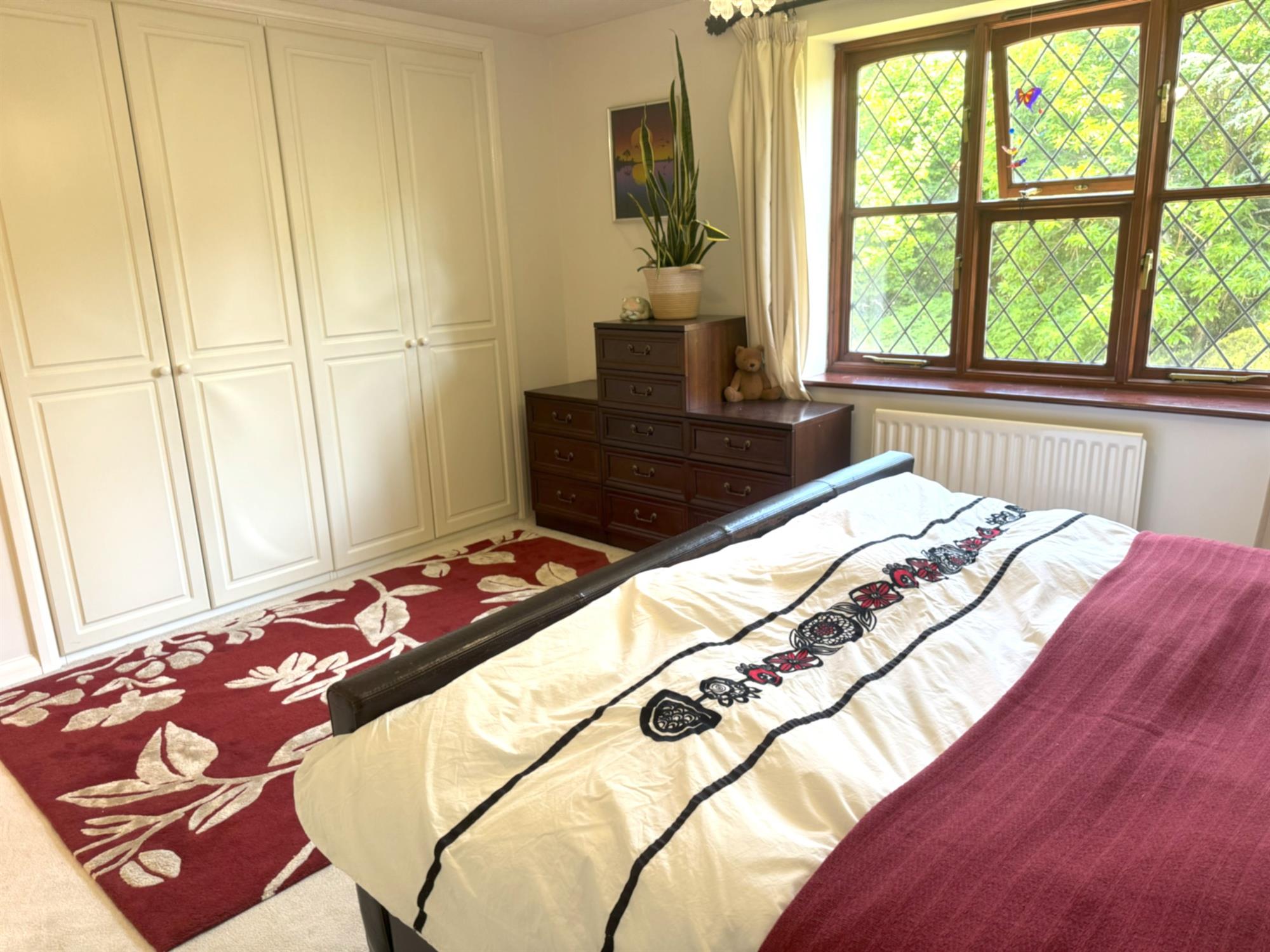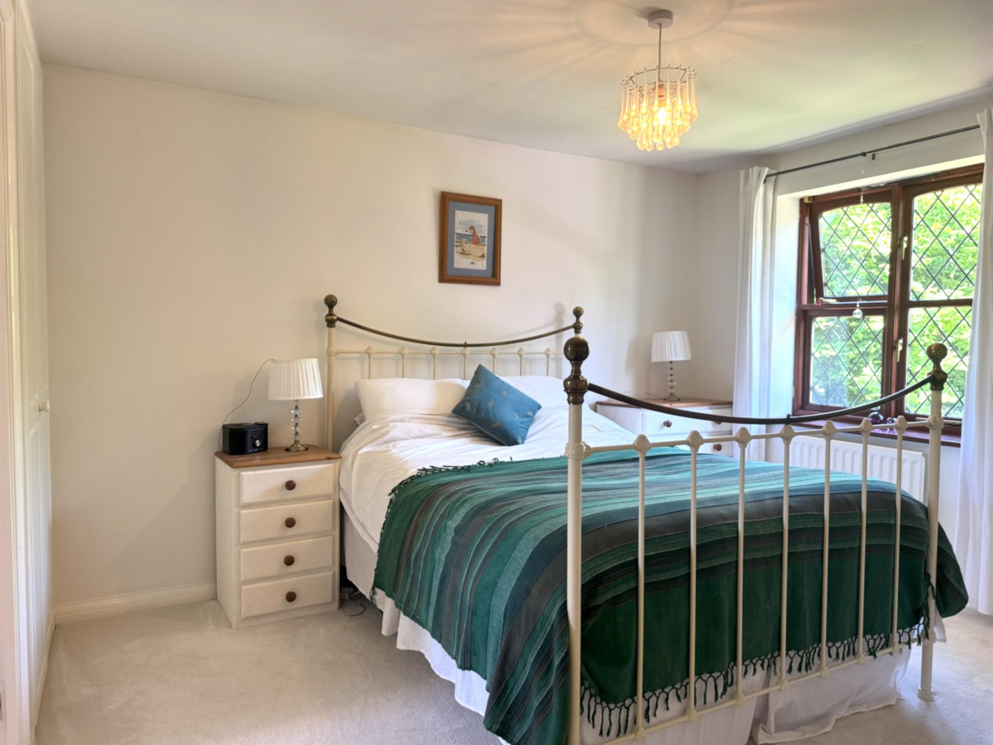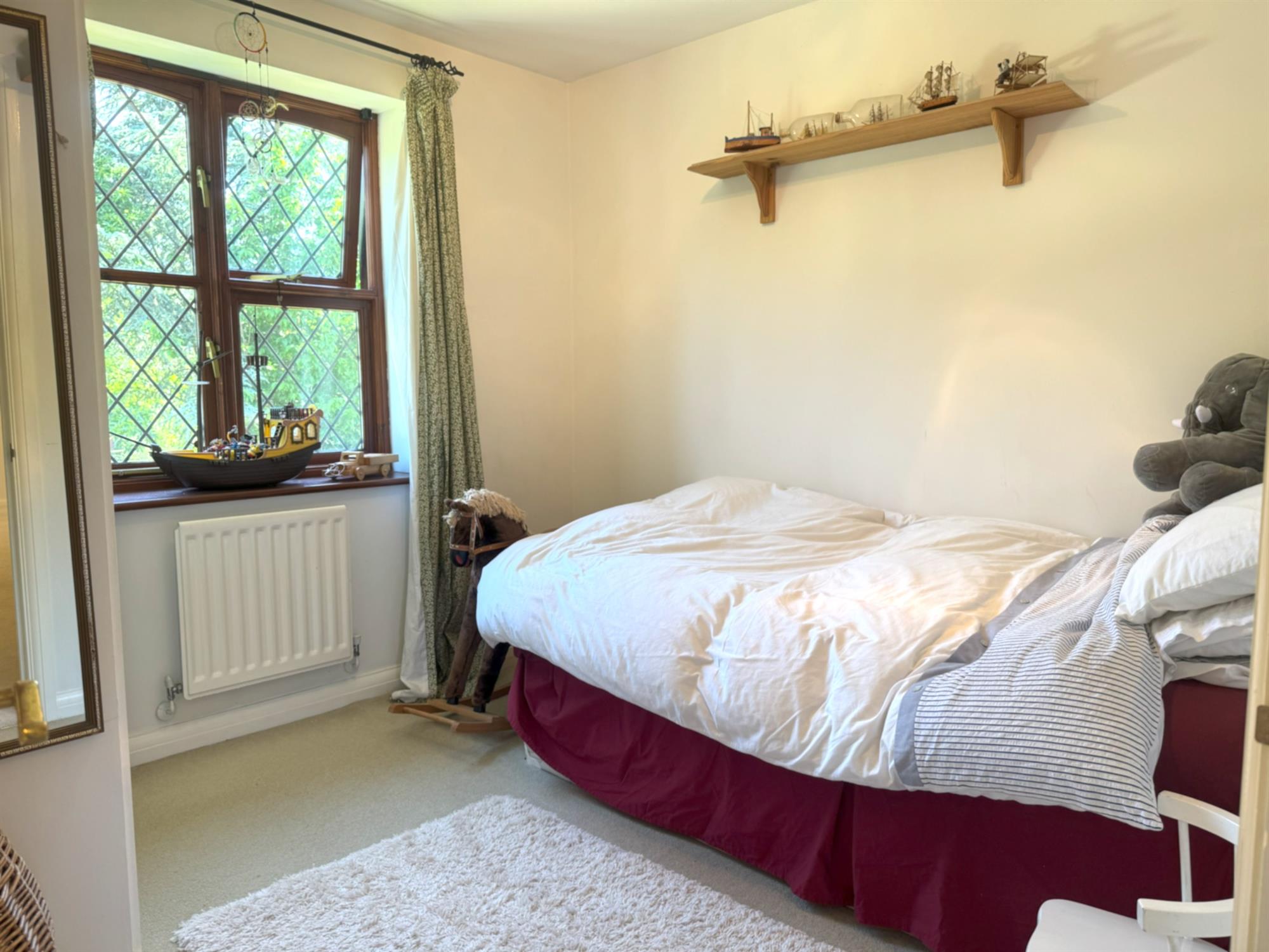 A comfortable room with a timber-framed double-glazed window overlooking the side garden, radiator, telephone point, carpeted flooring.