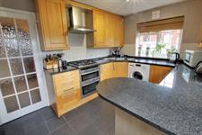Double glazed windows to front and side, opaque double glazed door to side, matching range of wall and base units with granite work surfaces, inset stainless steel one and a half bowl single drainer sink with mixer tap, four ring gas hob, overhead extractor, electric double oven, space and plumbing for washing machine and dishwasher, space for under counter fridge and freezer, tiled splash backs, tiled flooring, breakfast bar.