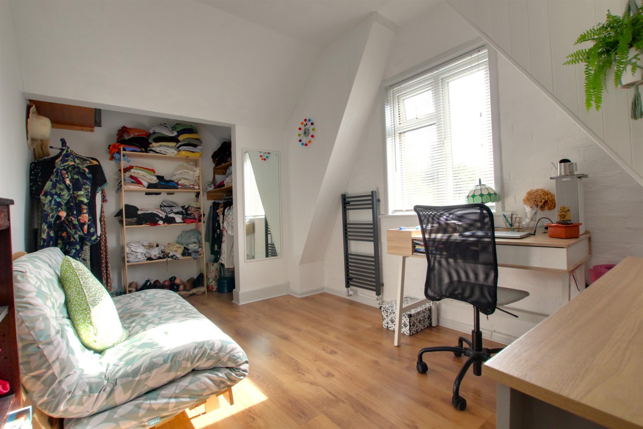 Wood laminate effect flooring, ample eaves storage, upvc double glazed window to the side aspect, ladder radiator, wardrobe/storage alcove, power points.