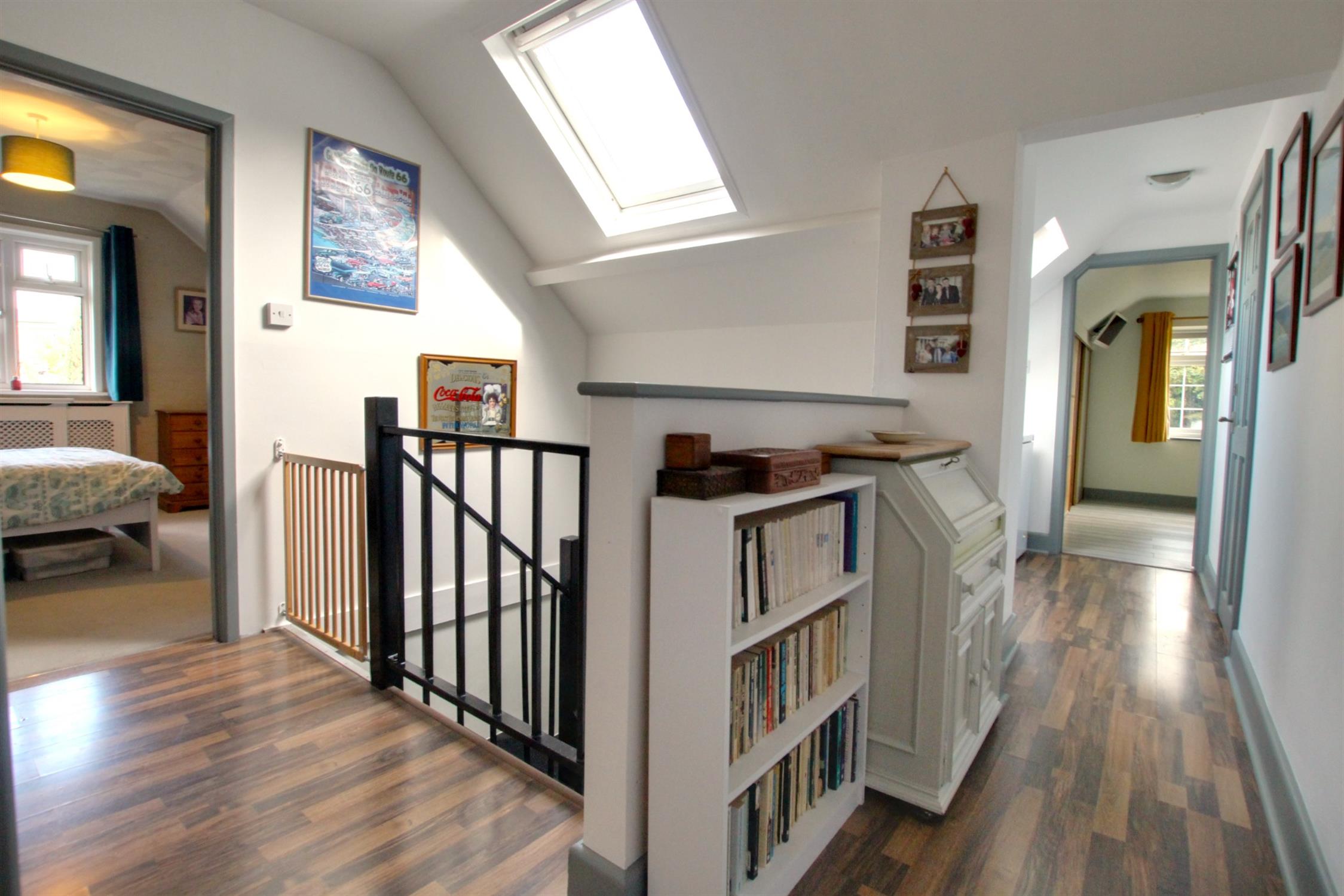Return stairwell with velux window above, landing features double door eaves storage, snug area and door to