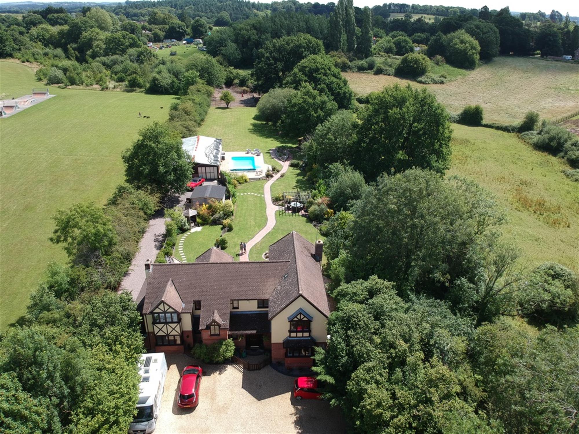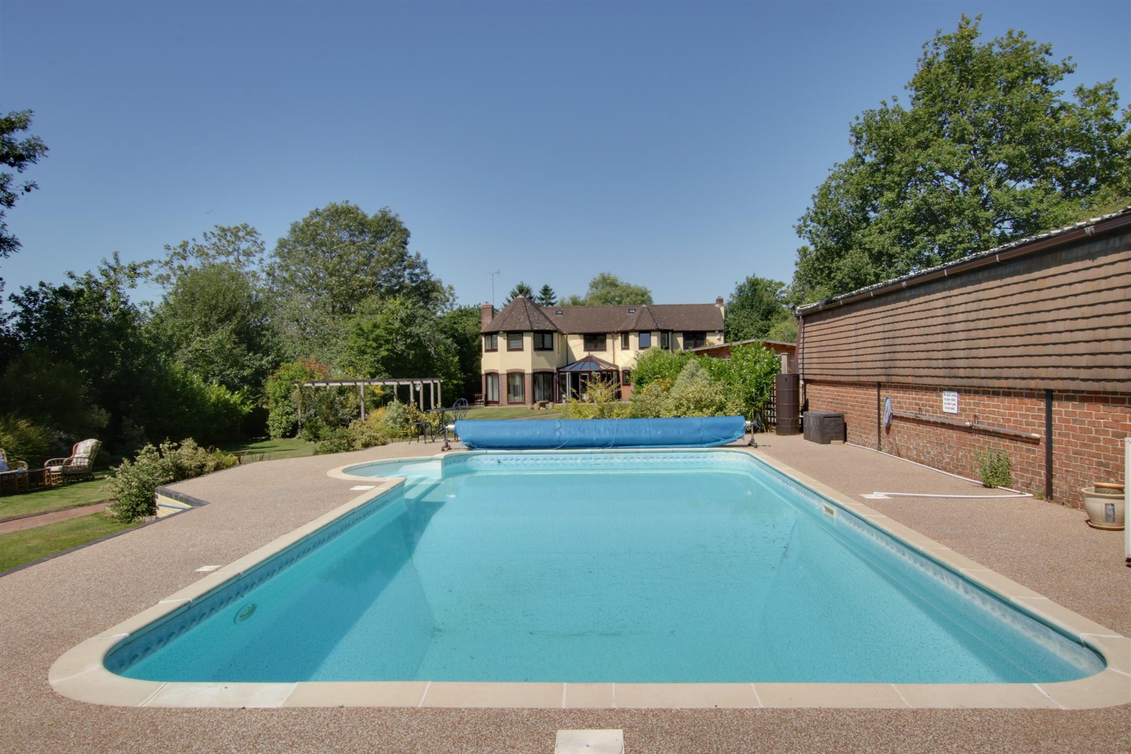 The fabulous secluded grounds extend to approximately 1.1 acres and are beautifully landscaped, with extensive lawns and planted borders. The gardens have been wonderfully designed and planted to enjoy family life, dine and entertain. Pergola and Gazebo. There is a substantial HEATED SWIMMING POOL with a surrounding terrace. POOL HOUSE. The front garden has extensive driveway parking, together with a DETACHED DOUBLE GARAGE. There is an additional access driveway to the side boundary of the house, which leads to a parking and turning area in front of the BARN/WORKSHOP, which has power, light and double opening doors to the front. GYM/STUDIO, with power, light, heat/air conditioning. To the rear of the garden there is a TENNIS COURT, which is in need of some refurbishment.