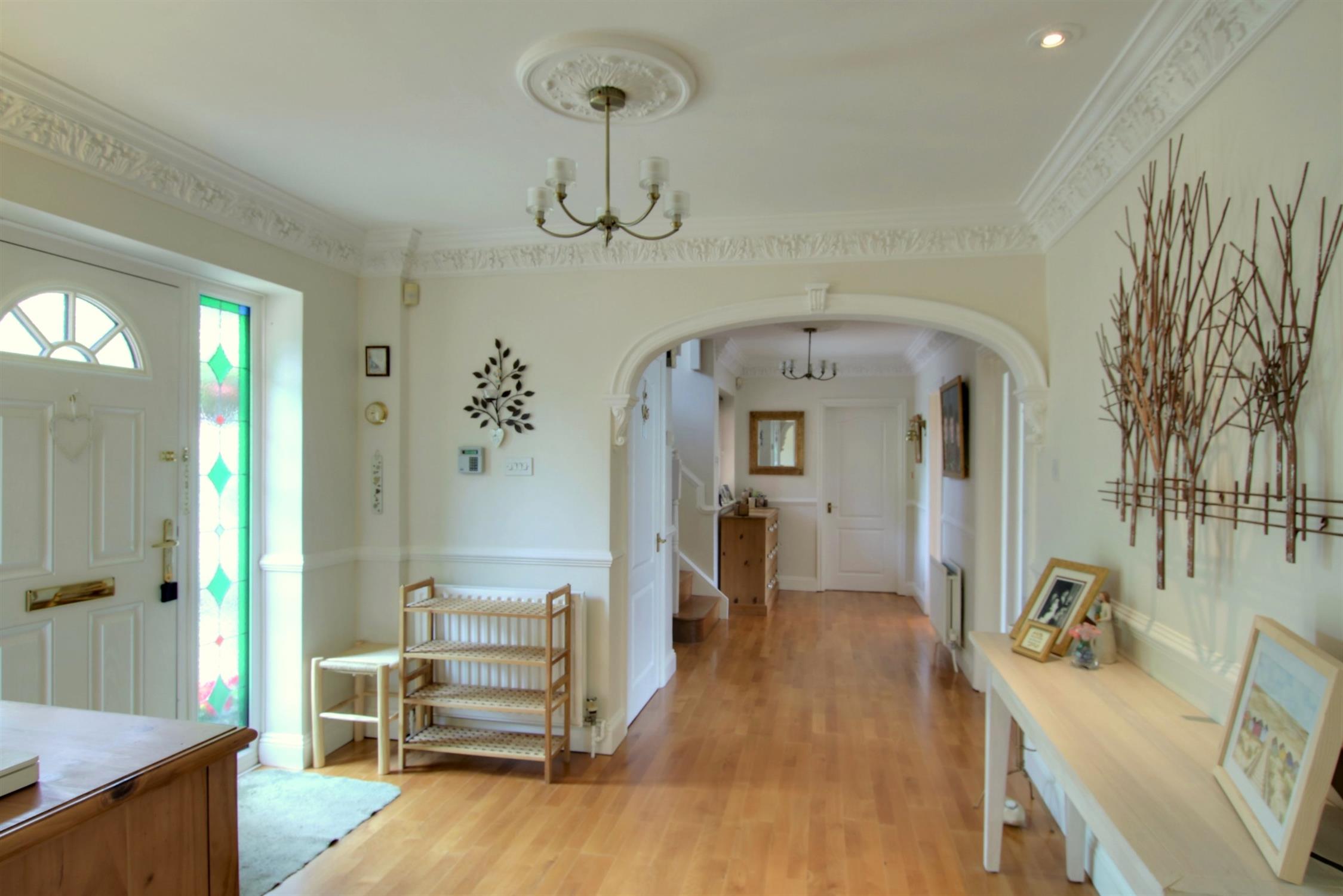 Ingleside is a most impressive detached home, perfectly set within its own secluded haven of beautiful, established grounds which extend to approximately 1.1 acres. The handsome and well proportioned house is spacious, light and superbly presented throughout, offering approximately 3500 sq ft of versatile accommodation - wonderful for an expanding or extended family. The external outbuildings and parking areas are an excellent addition to the property, having the potential to be used for a variety of uses which could include a fantastic solution for a home working enterprise. (subject of course to the usual consents).