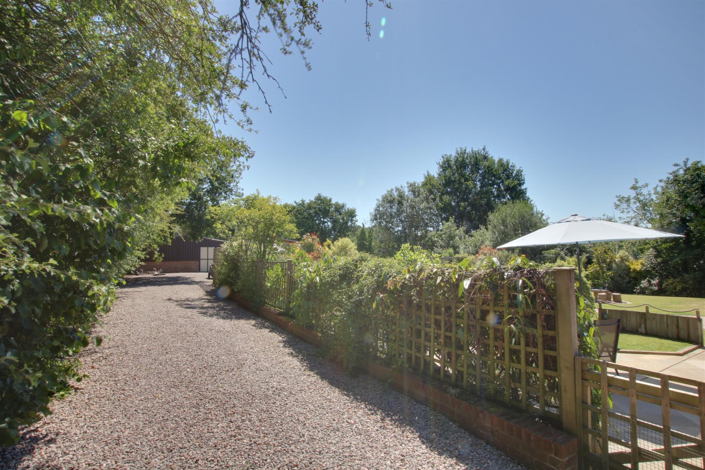 The barn/workshop has its own access driveway and measures approximately 60' x 31' (1870 sq ft). There is extensive frontage and driveway which is well screened and allows for ample parking and turning together with a detached double garage.