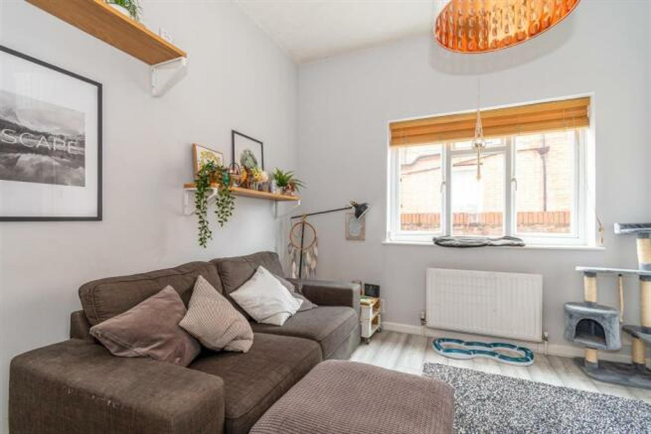 A light and airy room with carpet flooring and a window to the front. Additional benefits of a storage cupboard which houses the gas boiler.