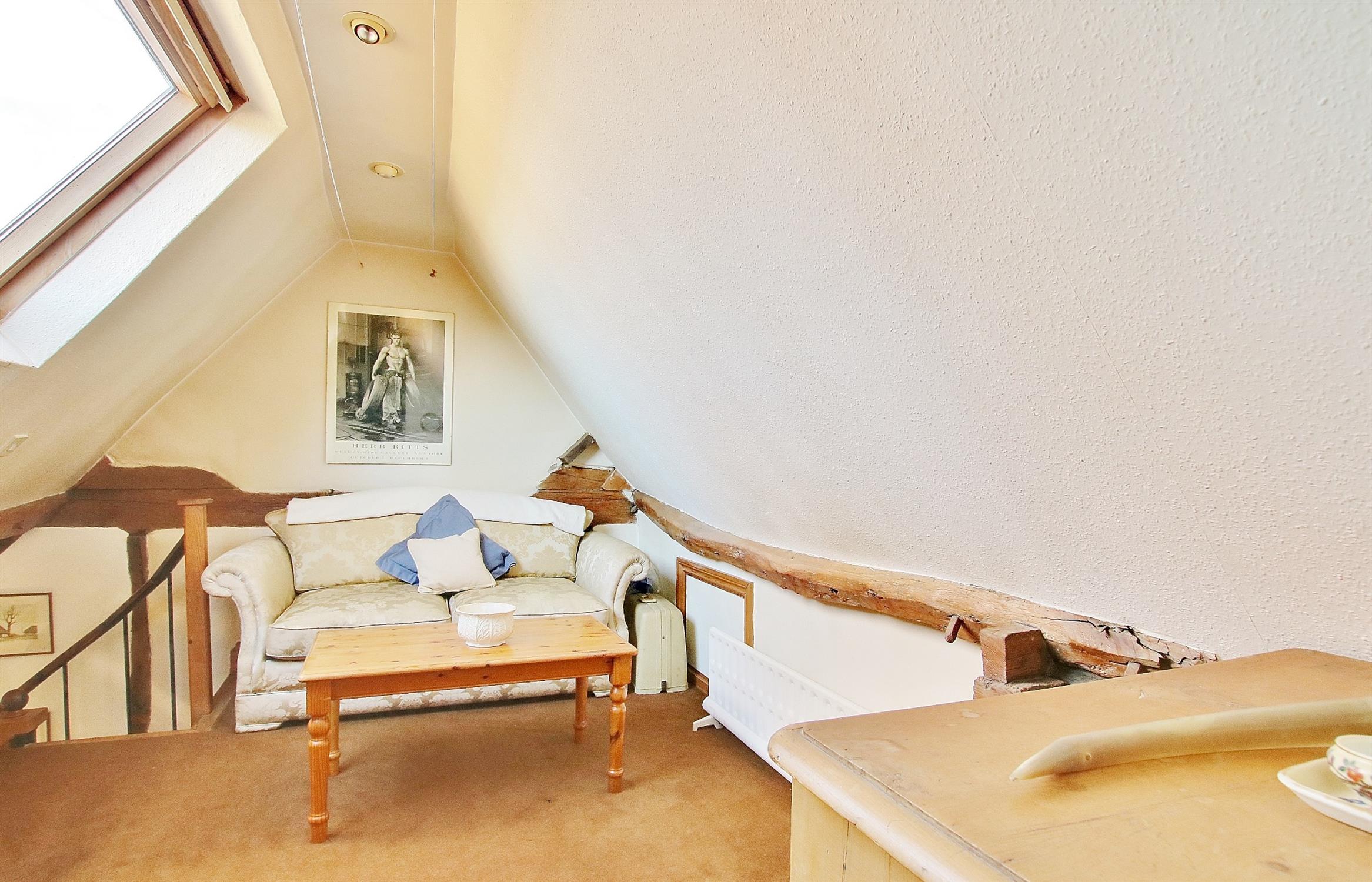 To the first floor there are two well proportioned bedrooms, a modern bathroom suite, further study/bedroom area with spiral staircase accessing the upper floor. The upper floor is divided into two and is a light and spacious area benefitting from a large Velux window. Externally there is a rear courtyard garden with gated access leading to the garage in a block. EPC: F.