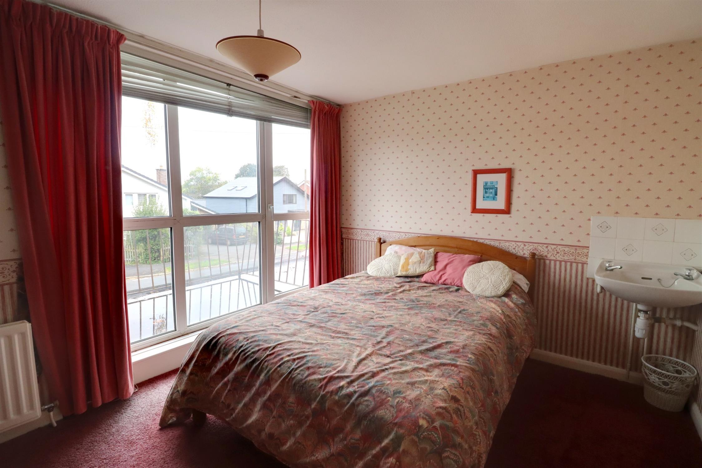 Front aspect double glazed window and double glazed door leading to the balcony, radiator, vanity unit, built in wardrobe giving further access to eaves storage.