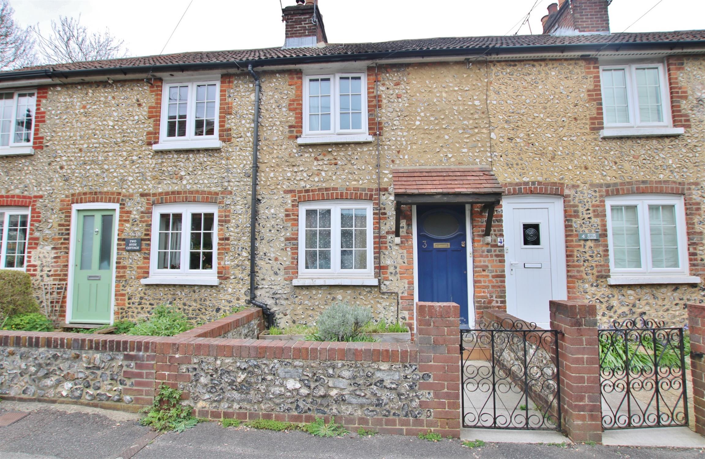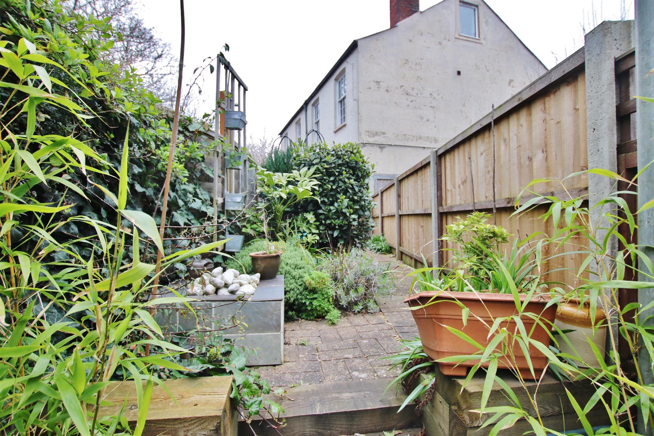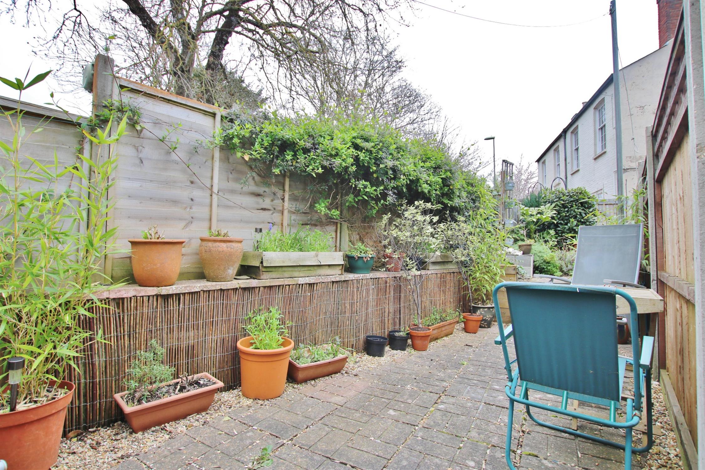 OUTSIDE - To the front of the property is a small garden enclosed by a brick and flint wall with a gate, raised border. To the rear is a paved area with flowerbed borders and a gate for access. Permit parking.