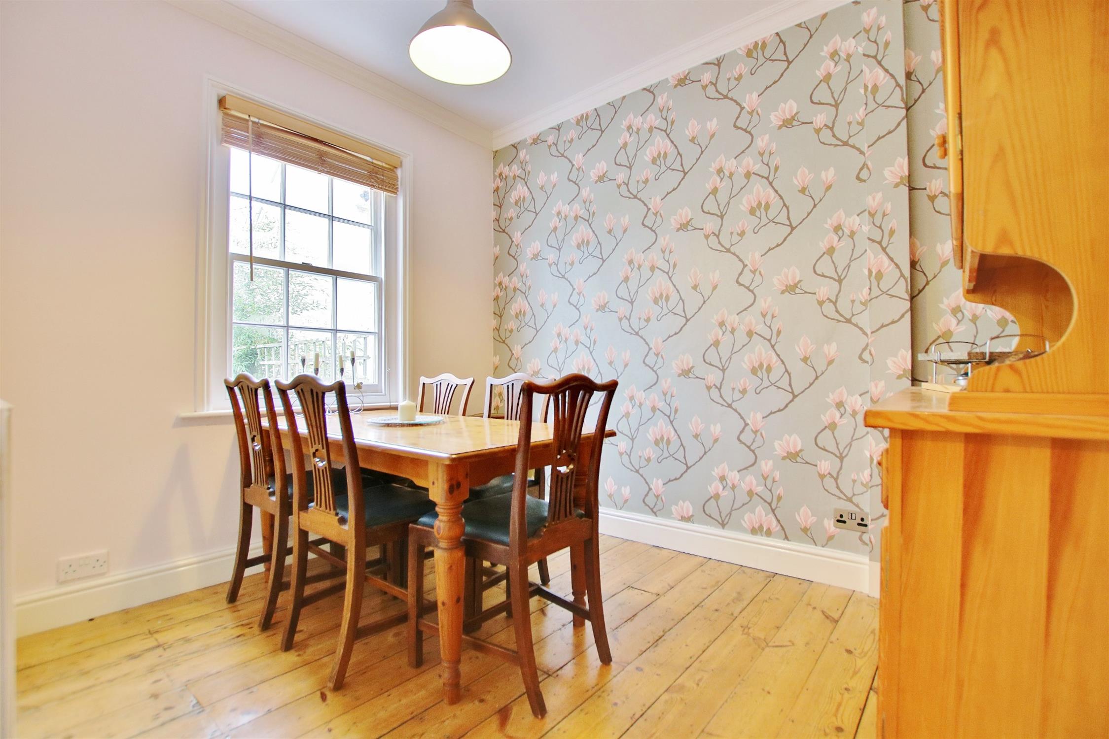 Bedroom Two - Single Room with original wooden flooring and decorative wall paper - perfect for a small childs' bedroom.