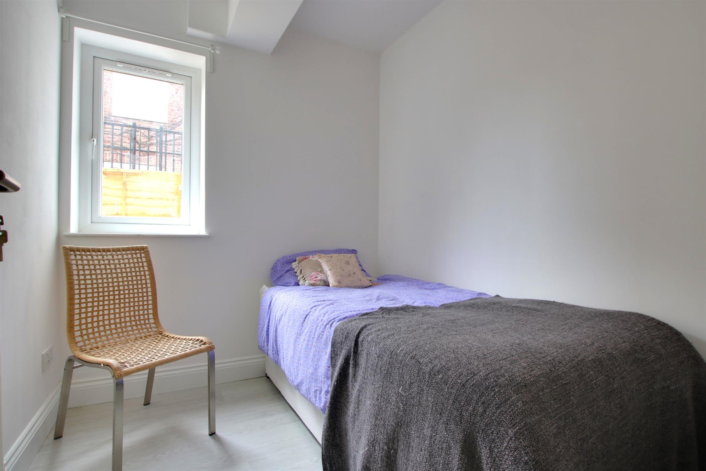 Double glazed door leading to the private courtyard style garden. Radiator. Smooth plastered ceiling. Matching wood flooring. Access to inner lobby which leads to:-
