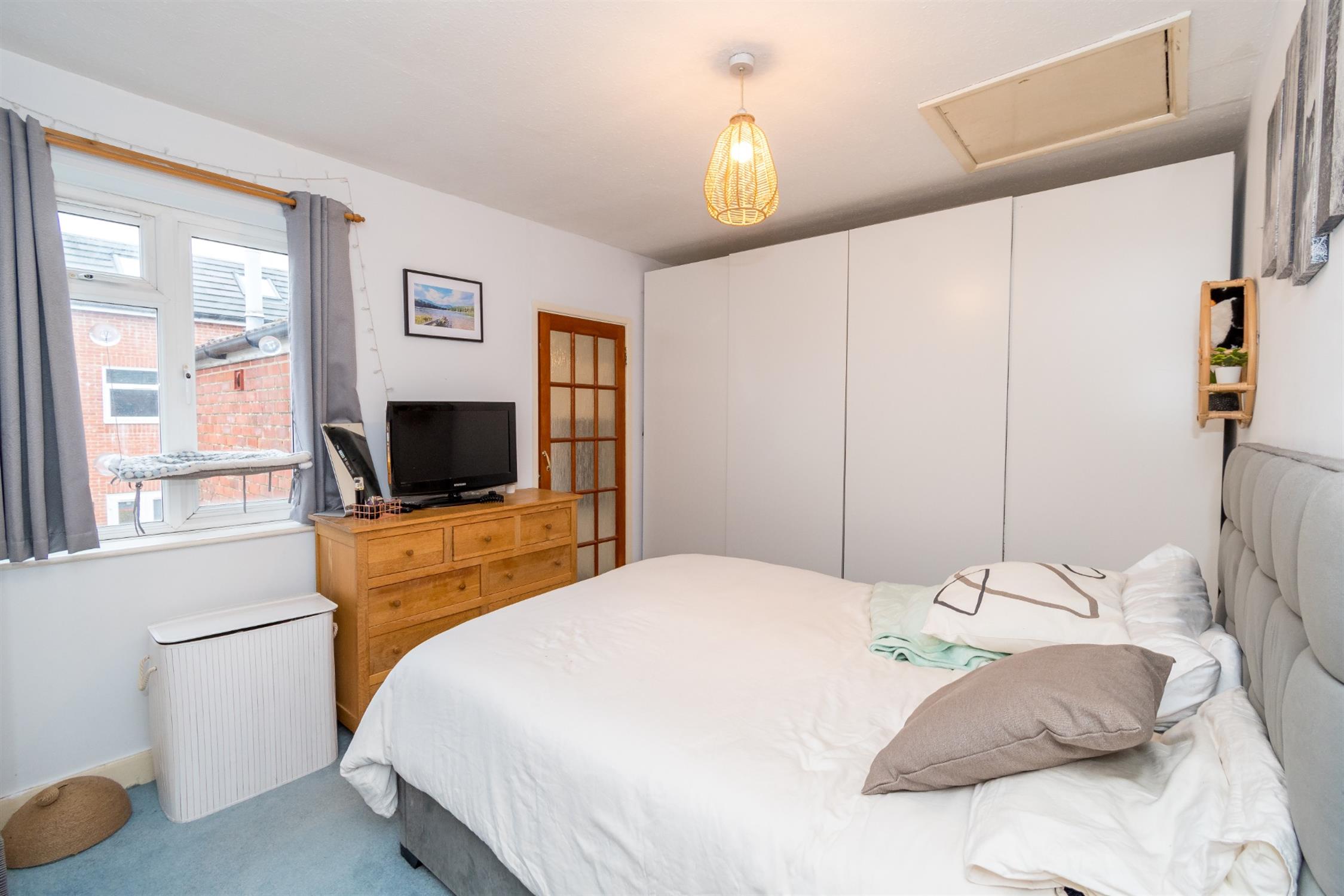 Carpet flooring, double glazed windows to rear aspect, door leading to en-suite bathroom, smooth walls and textured ceiling, access to loft hatch, multiple electrical sockets, radiator.