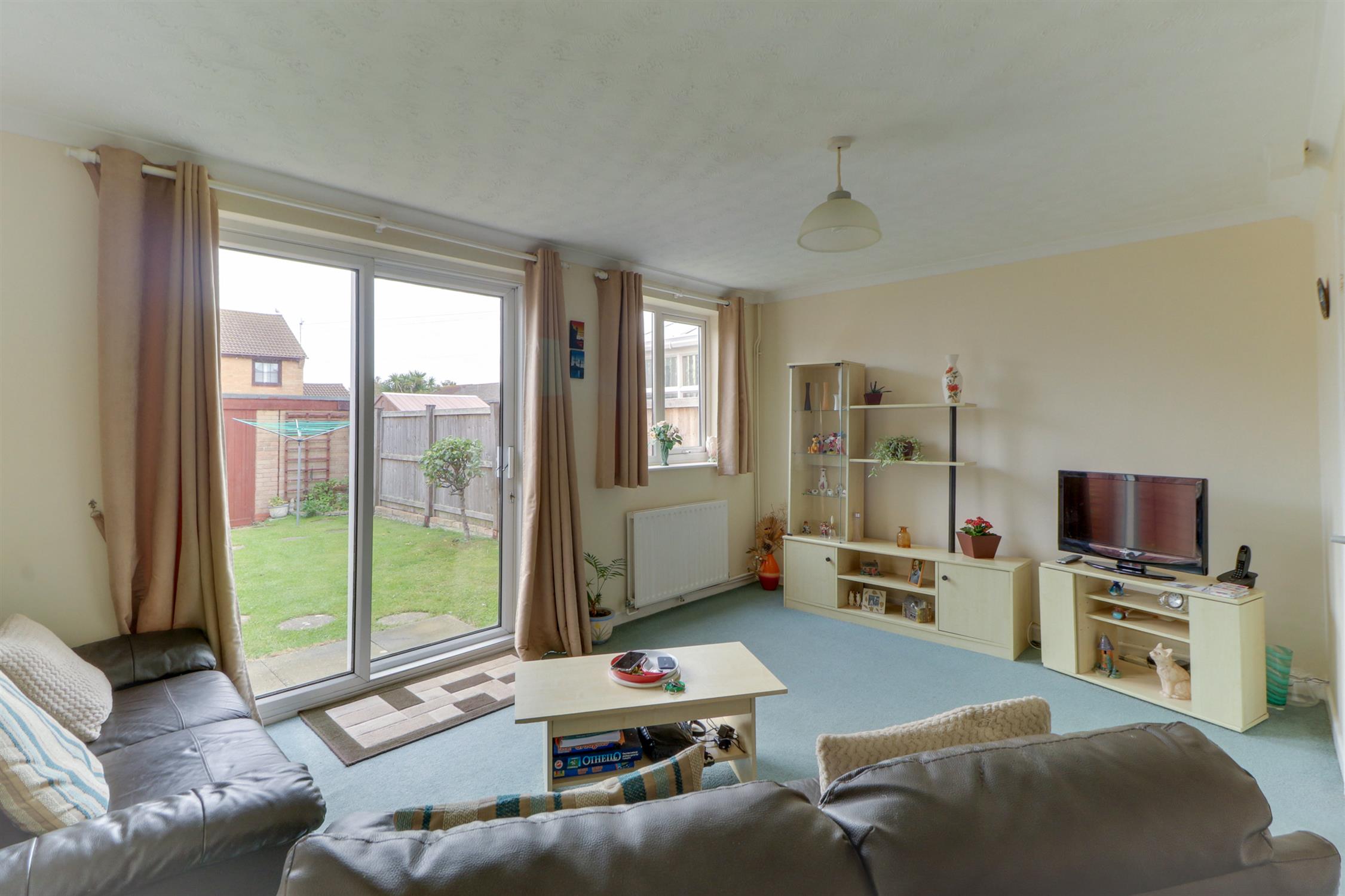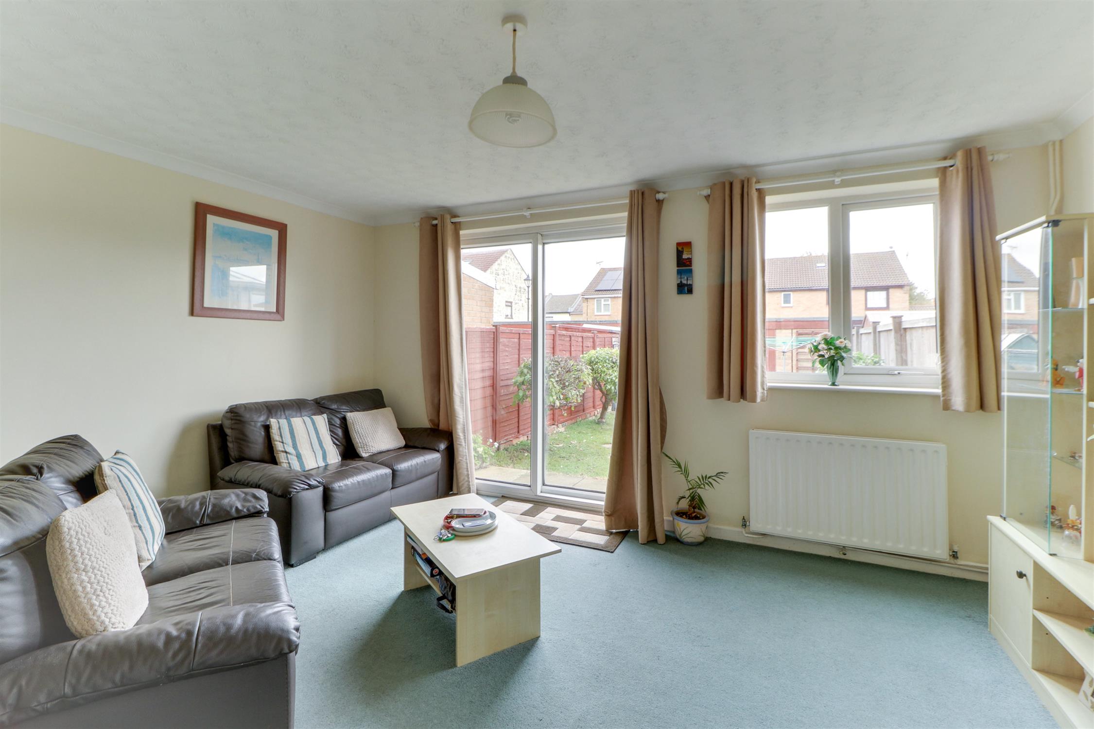 Textured and coved ceiling, UPVC double-glazed window, sliding UPVC double-glazed doors, radiators and fitted carpet.