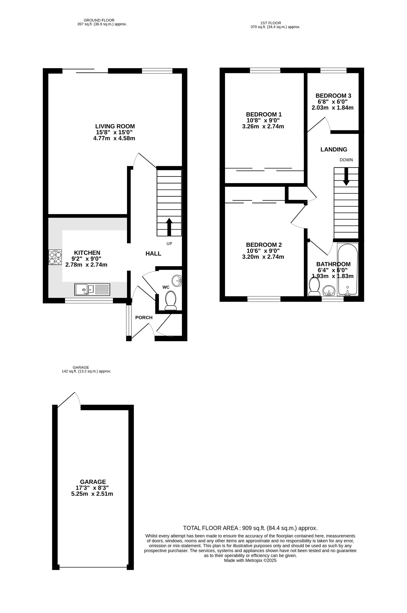 Outside, the property benefits from an enclosed rear garden, laid with lawn and planting beds, and a single garage accessible from the garden, along with an additional off-road parking space.