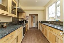 Smooth ceiling, double glazed side aspect window, range of wall and base mounted units with work surfaces over, integrated electric oven and gas hob with extractor over, utility area with space and plumbing for washing machine and cupboard with space for fridge freezer, vinyl flooring.
