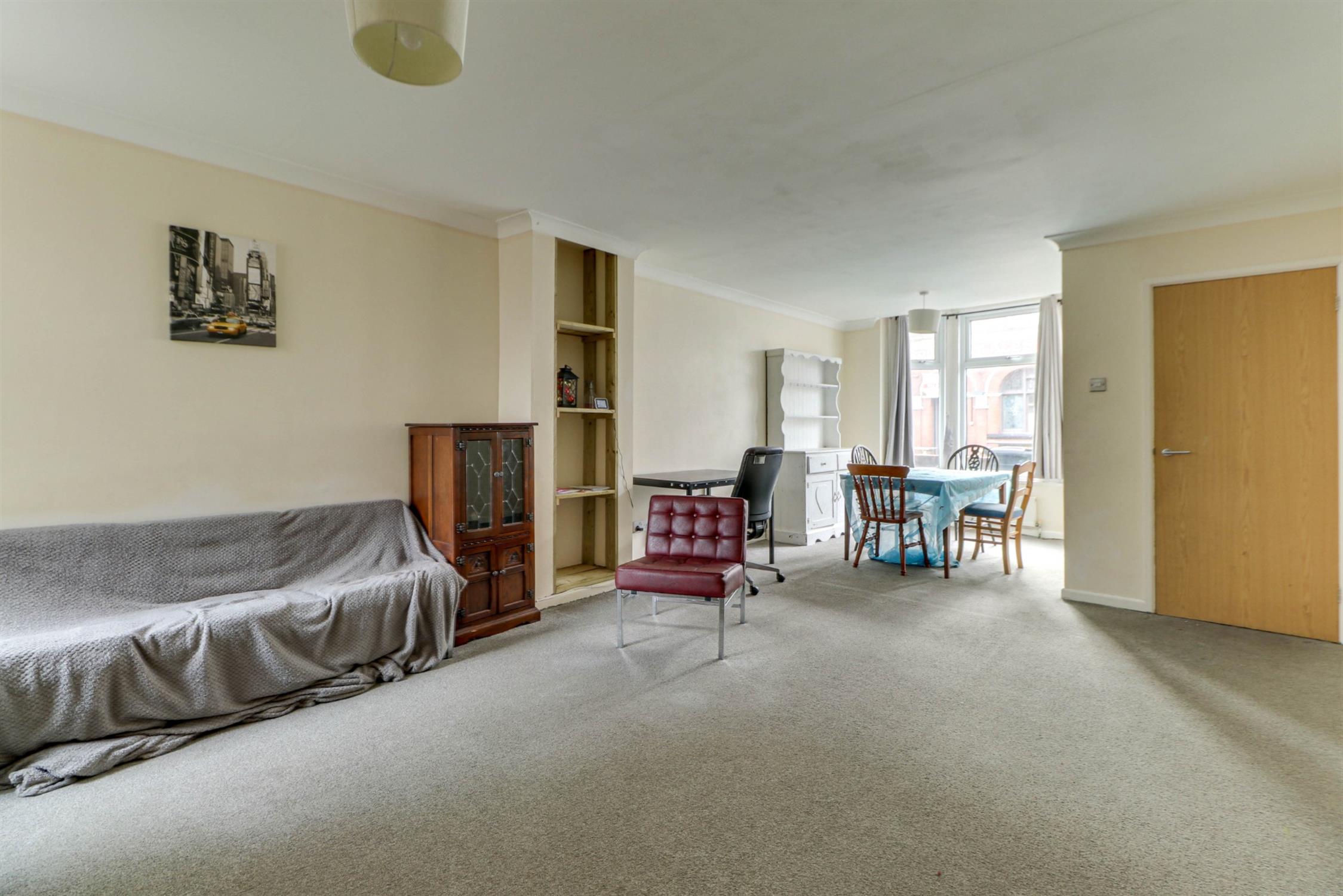 Smooth and coved ceiling, double glazed rear aspect window, double glazed bay windows to front aspect, two radiator, fitted recessed shelving, fitted carpet.