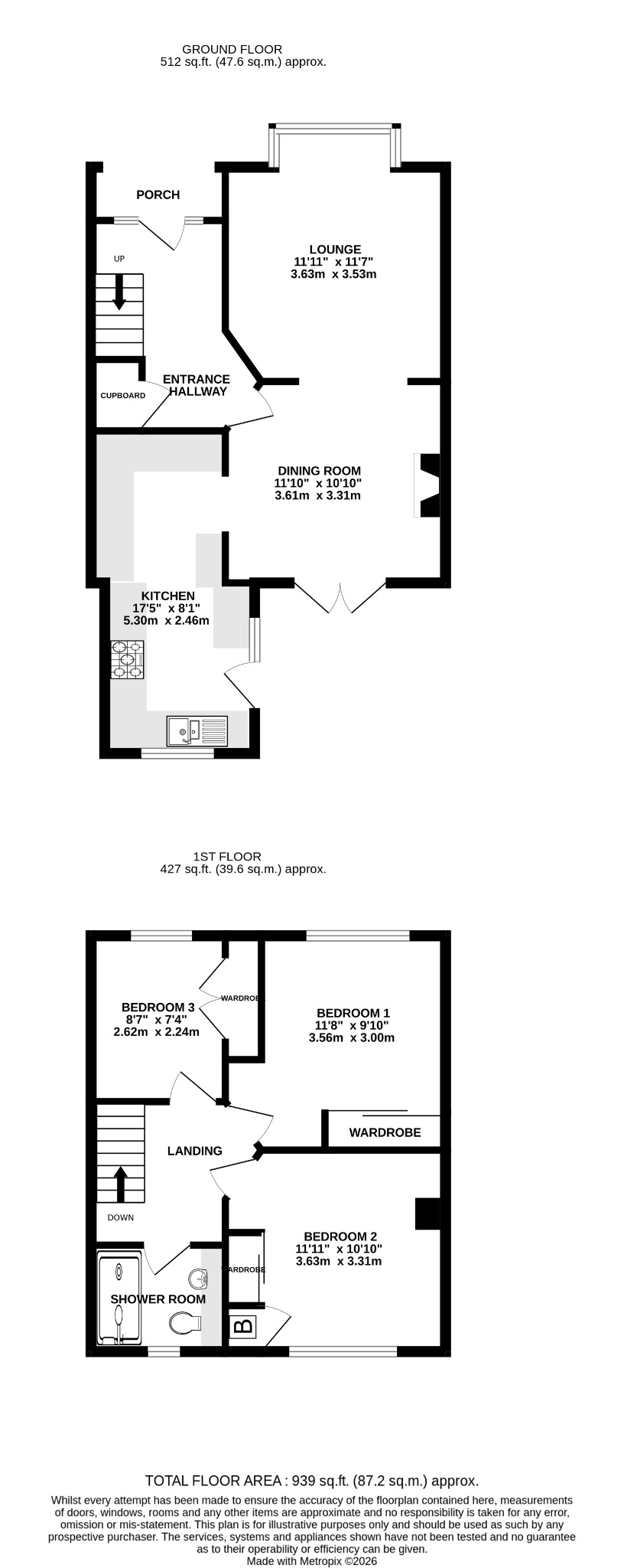 Double glazed door leading to the rear garden. Double glazed window to the rear aspect. Matching wall and base units with under-unit lighting. Contrasting worktops. Inset sink and half drainer. Tiled splashback. Five ring gas hob with extractor above. Fitted oven/grill, fridge/freezer and washing machine. There will be space for a slimline dishwasher, as this is currently not in working use. Wood effect vinyl flooring.