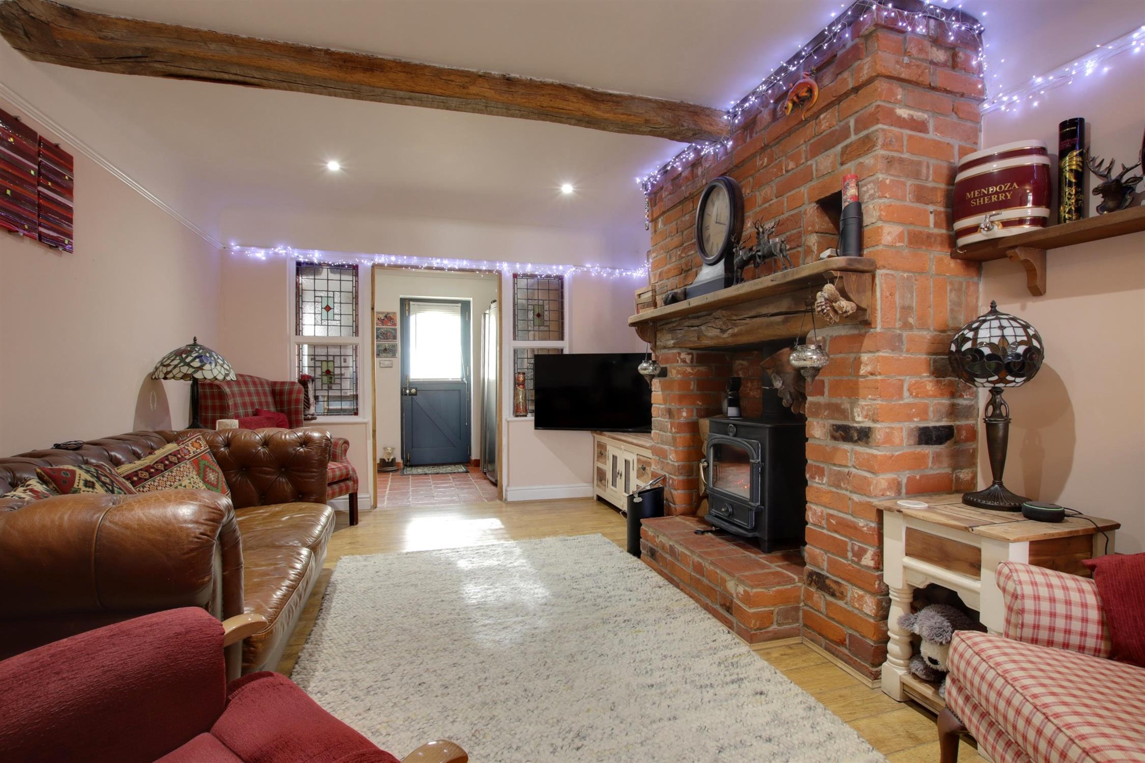 Double glazed window to the front aspect with fitted plantation shutters. Smooth and coved ceiling with feature beams. Feature brick fireplace with tiled hearth and wooden mantle piece. Multi-fuel stove available via negotiations. Radiator. Wood effect laminate flooring.