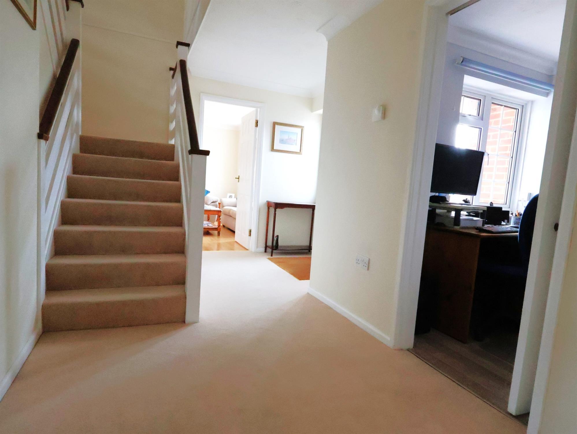 Built in storage cupboard. Central heating thermostat. Stairs to first floor. Large walk-in coat cupboard. Radiator.