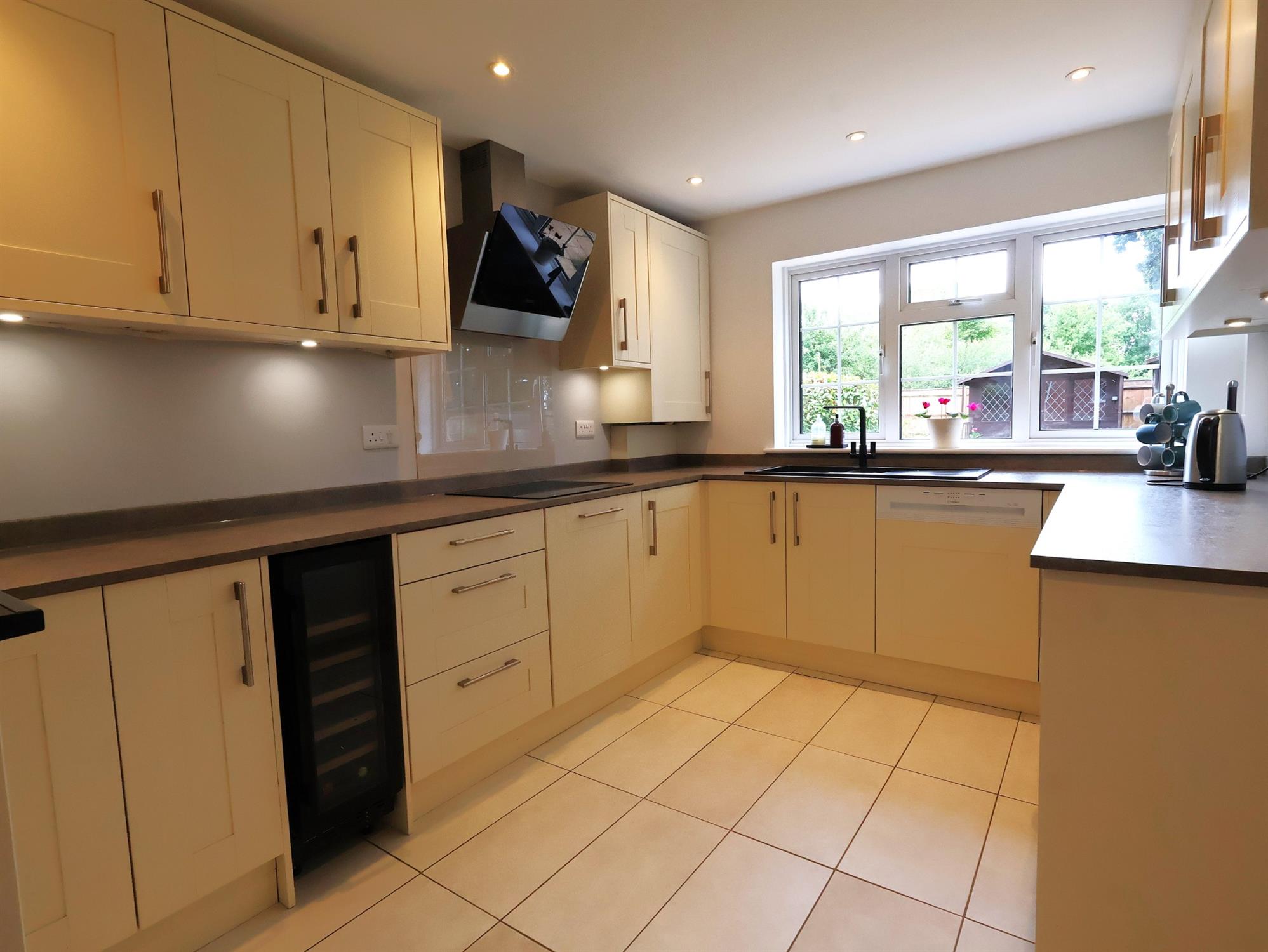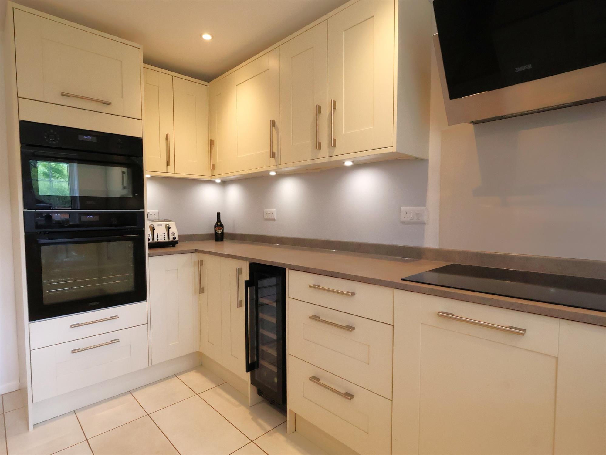 Window to rear. Recently fitted with a Tiverton solid wood kitchen which includes a comprehensive range of base and wall units with work surfaces over. One and a half bowl granite sink unit with mixer tap. Integrated fridge and dishwasher. Inset Zanussi induction hob with extractor hood fitted over. Built in Zanussi oven with air fryer facility. Built in combi microwave/oven/grill. Built in wine cooler. Cupboard housing Ideal gas fired boiler supplying domestic hot water and central heating. Floor tiling.