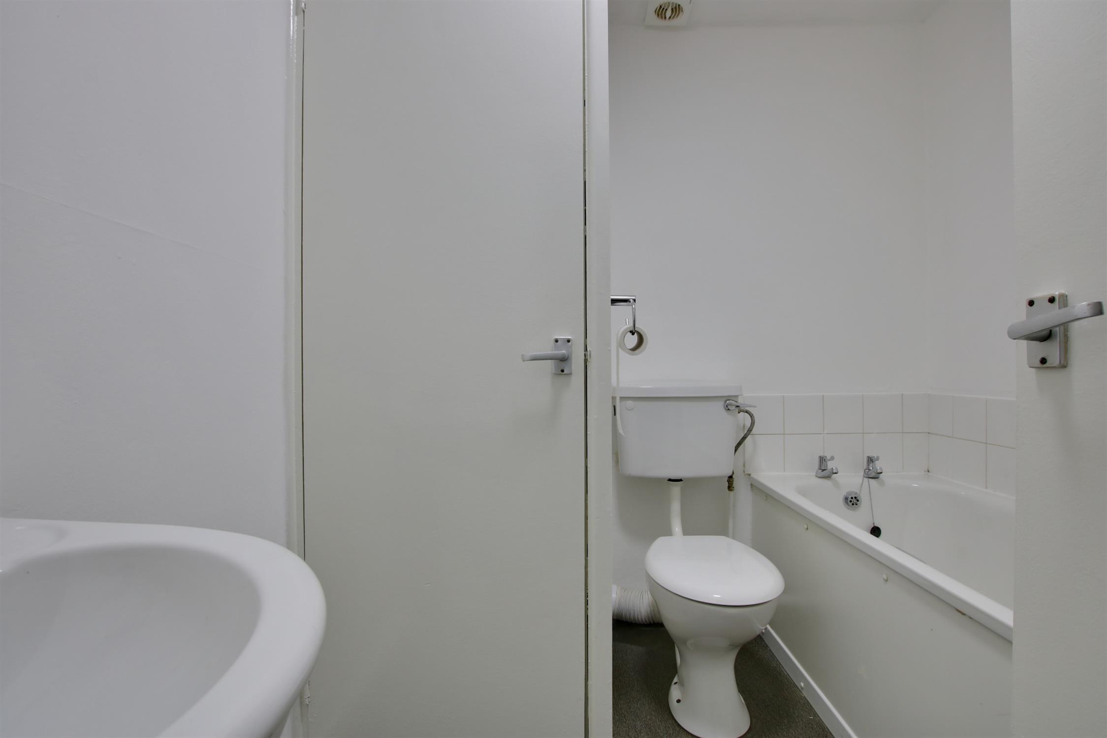 Panel enclosed bath. Low level close coupled WC. Pedestal wash hand basin. Radiator. Storage cupboard.