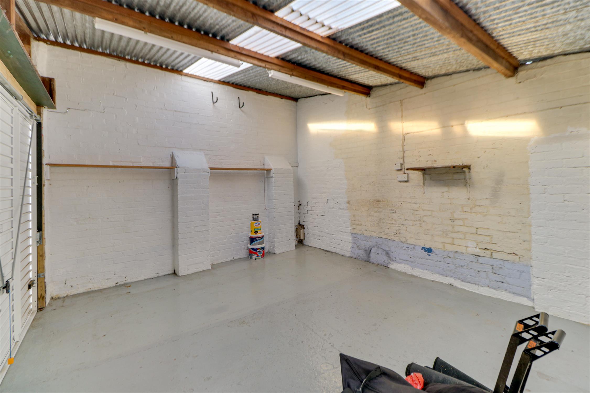 Up and over door accessed from Delamere Road, obscured window, light panels, light and power.