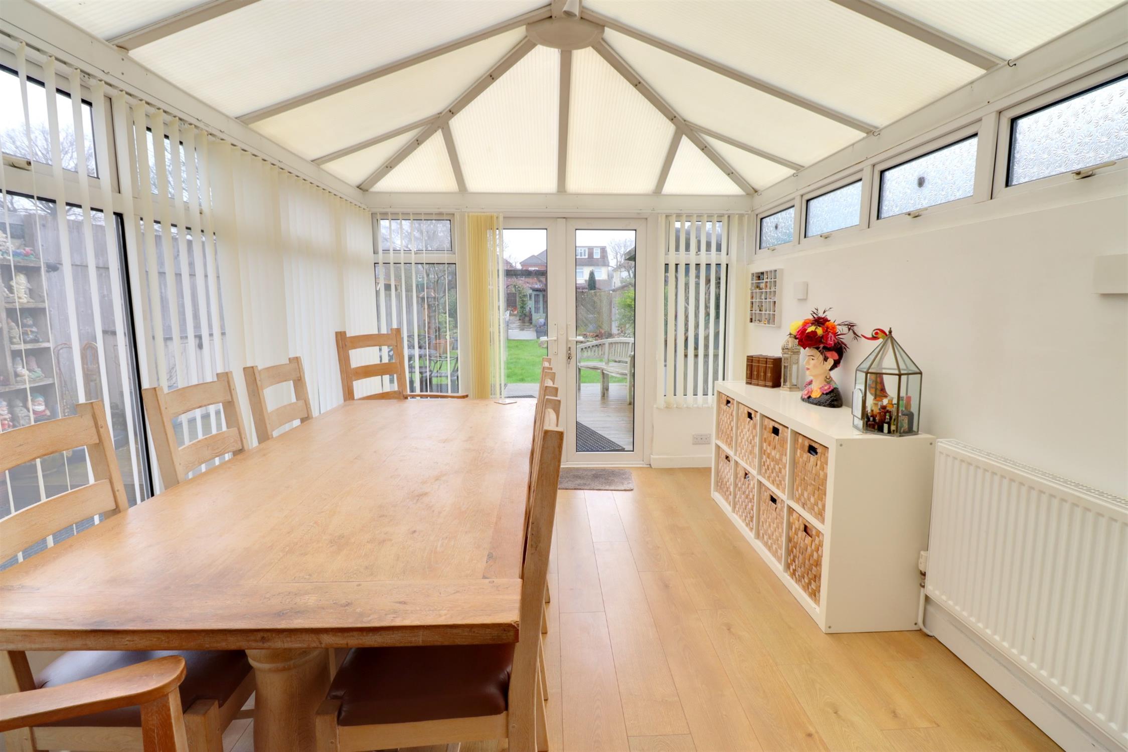 Brick base, double glazed windows to side and rear aspects, double glazed French doors leading to the rear garden, polycarbonate style roof, radiator, laminate flooring.