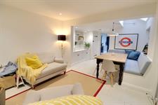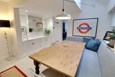 Double glazed window to side, roof window, radiator, wood burner, tiled flooring, banquette seating, under stairs storage cupboard, built-in storage and shelving, space for tumble dryer.