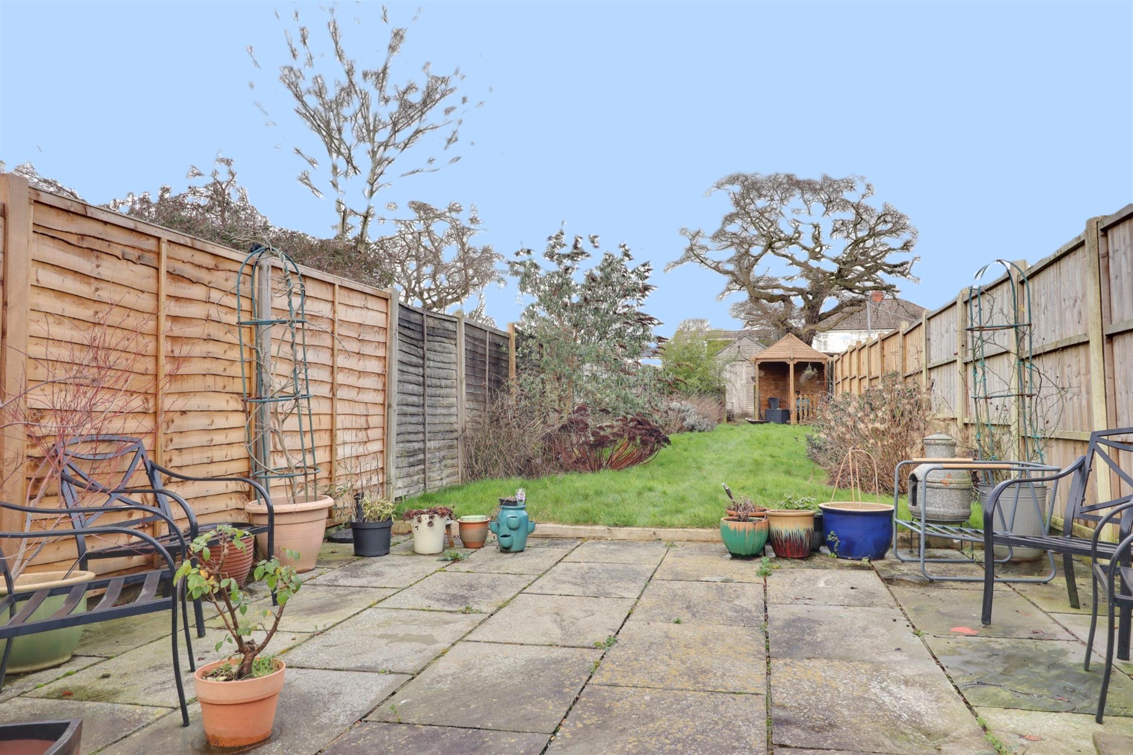 Approx 140ft long. Timber fence and close board fence panel enclosed, raised paved patio seating area with timber sleepers, predominantly laid to lawn with flowering shrubs, gazebo store, timber shed/summer house with power and light, external courtesy lighting, outside tap and electric sockets.
