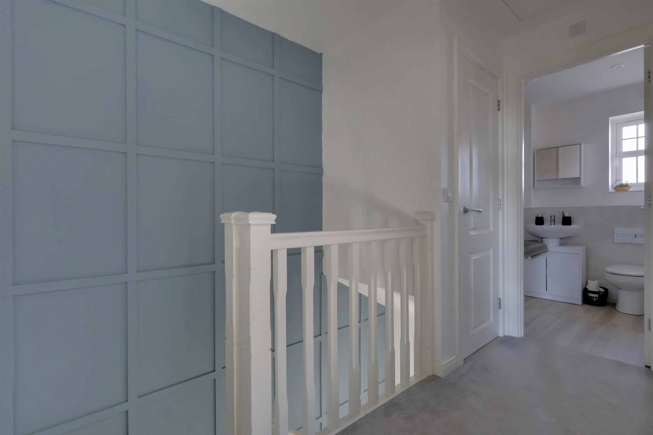 Access to the first-floor rooms, a loft hatch, and two built-in cupboards.
