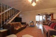 Double glazed window to front elevation. Staircase to first floor. Radiator. Feature exposed brick wall. Shared chimney breast with dining room with log burning stove. Engineered wooden flooring. Coved and skimmed ceiling. Wide opening to: